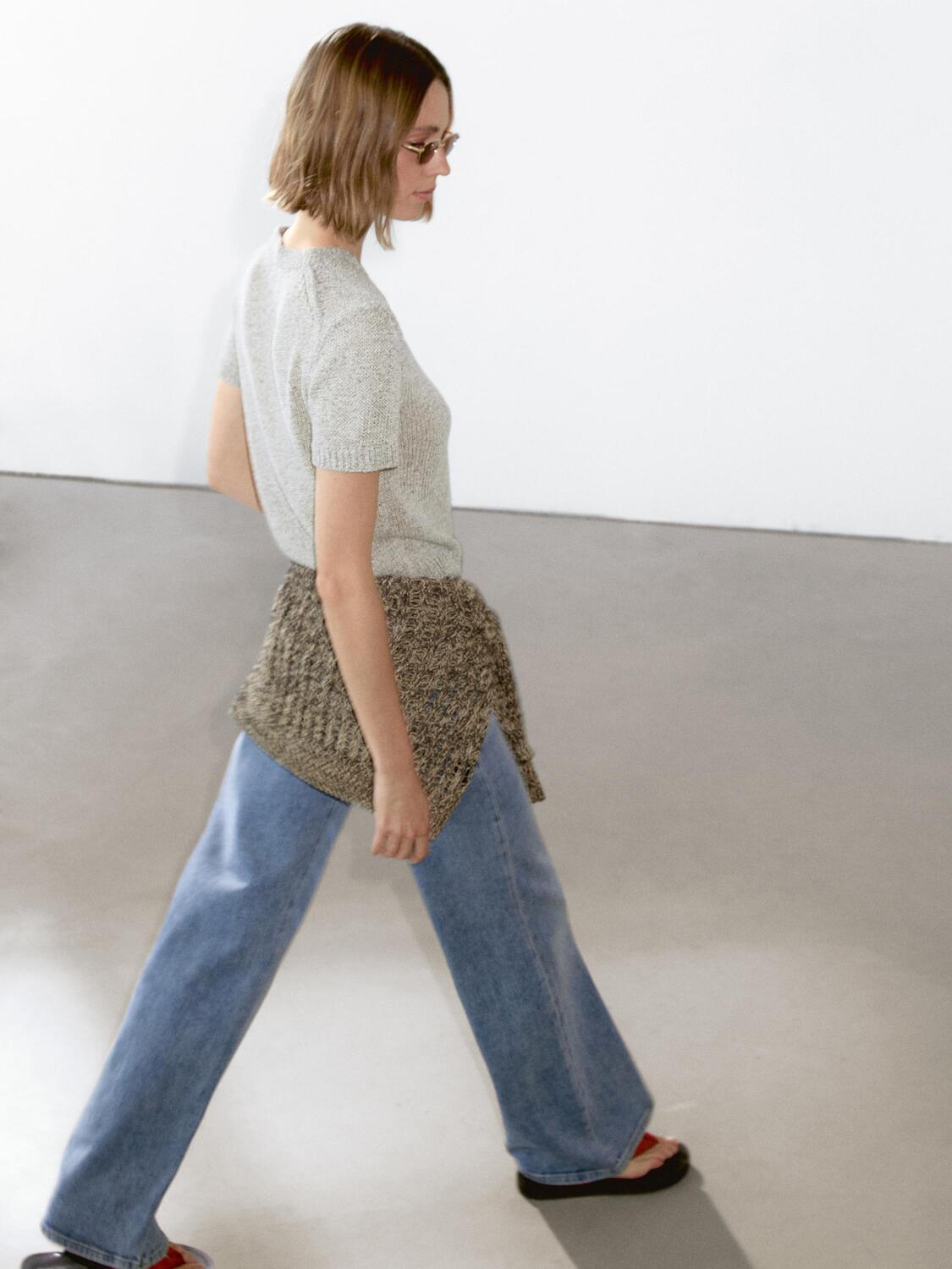 Вязаный свитер с тканевой деталью Massimo Dutti, бледно-серый 5 027₽