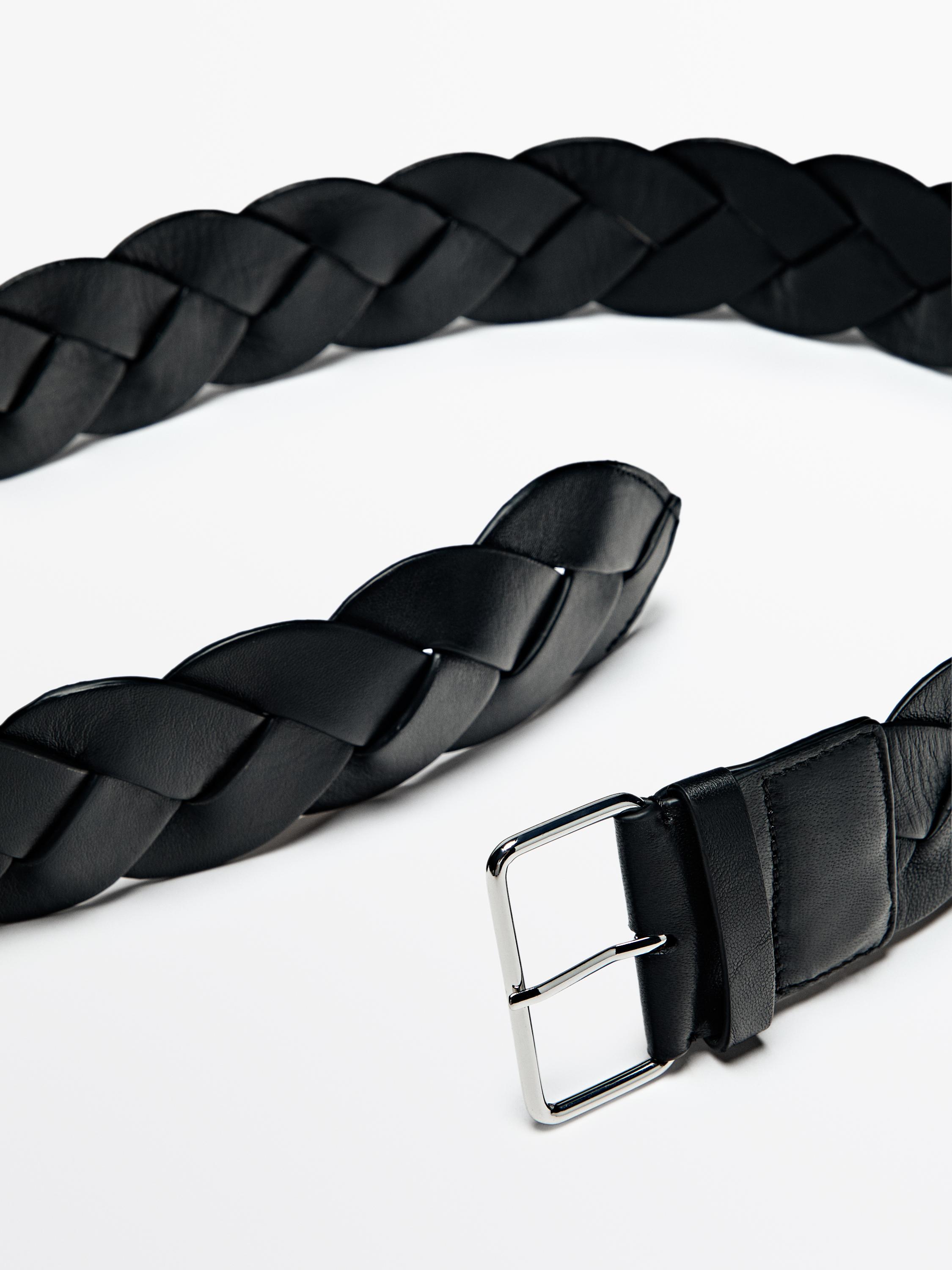 Плетеный ремень из кожи наппа Massimo Dutti, черный