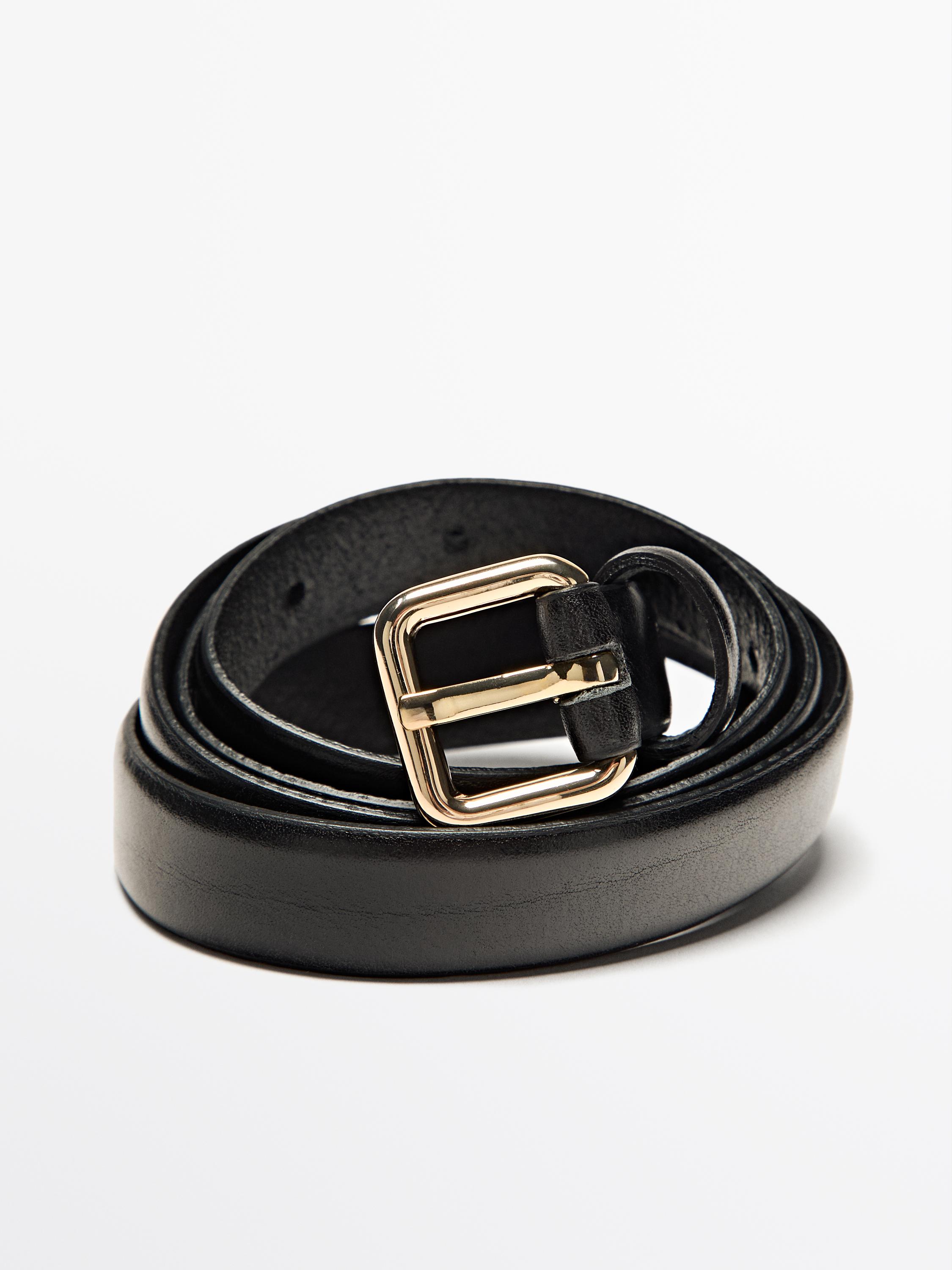 Кожаный ремень с квадратной пряжкой Massimo Dutti, черный