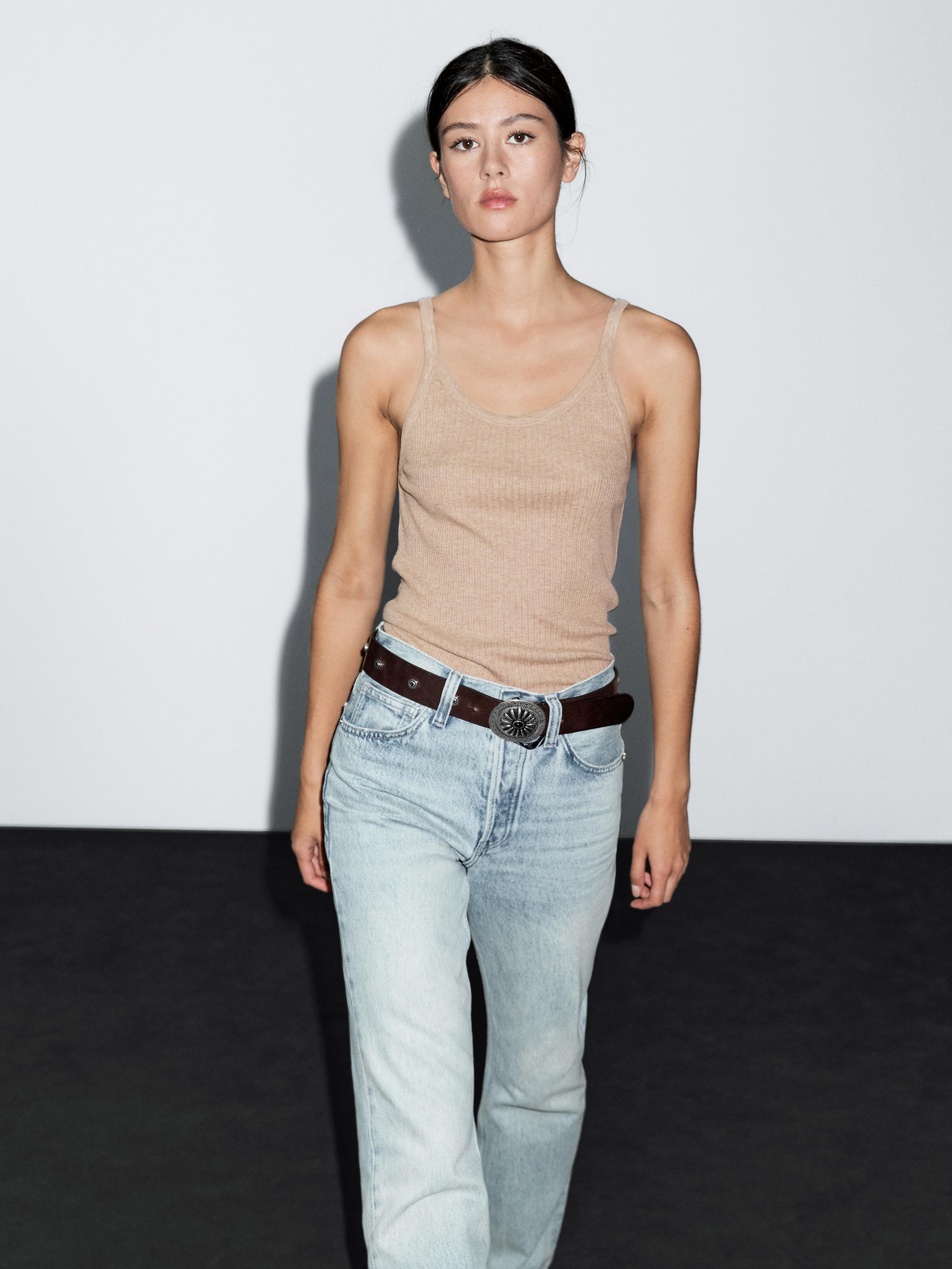 Топ из 100% хлопка-меланжа на бретелях Massimo Dutti, песочный 2 722₽