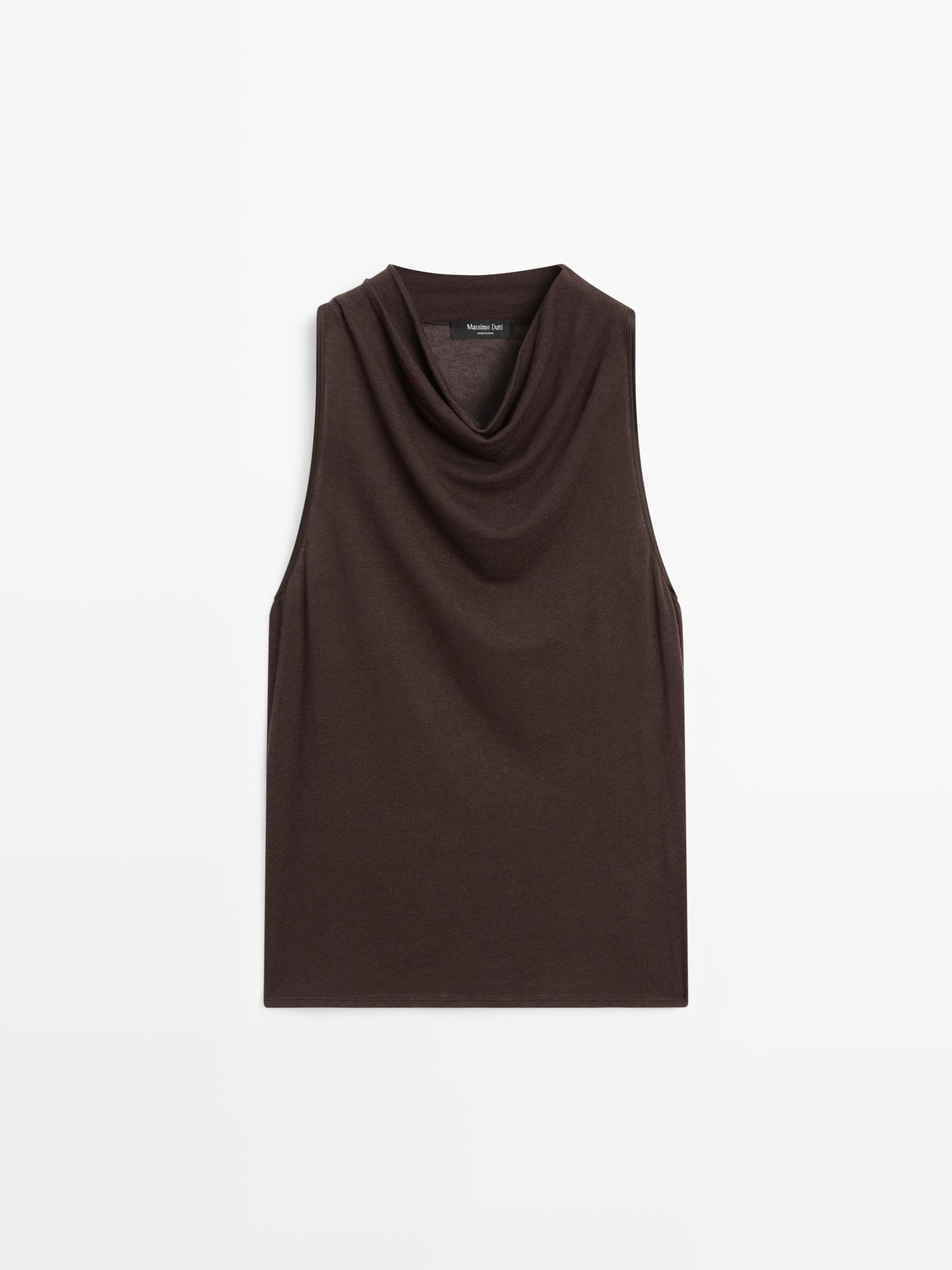 Топ без рукавов с драпированным вырезом Massimo Dutti, коричневый