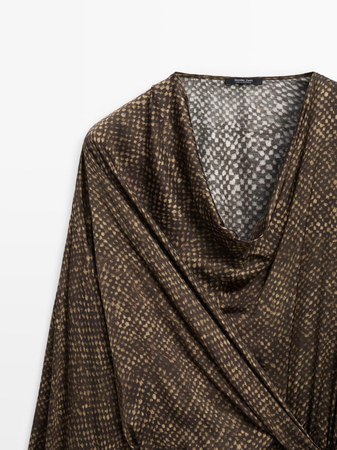 Длинное струящееся платье с принтом и узлом Massimo Dutti, мокко 8 616₽