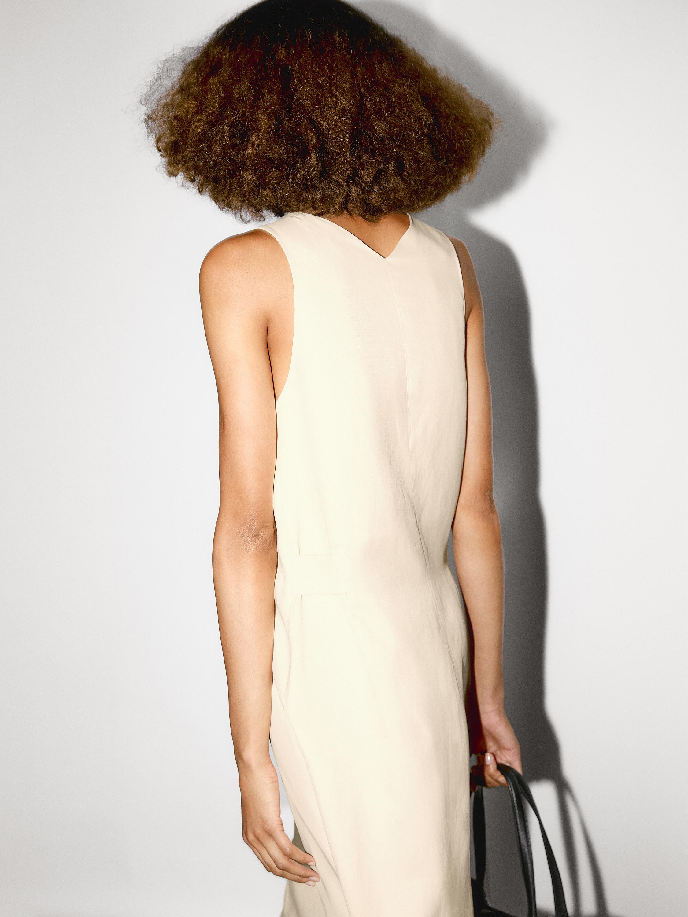 Длинное струящееся платье с V-образным вырезом Massimo Dutti, бледно-желтый