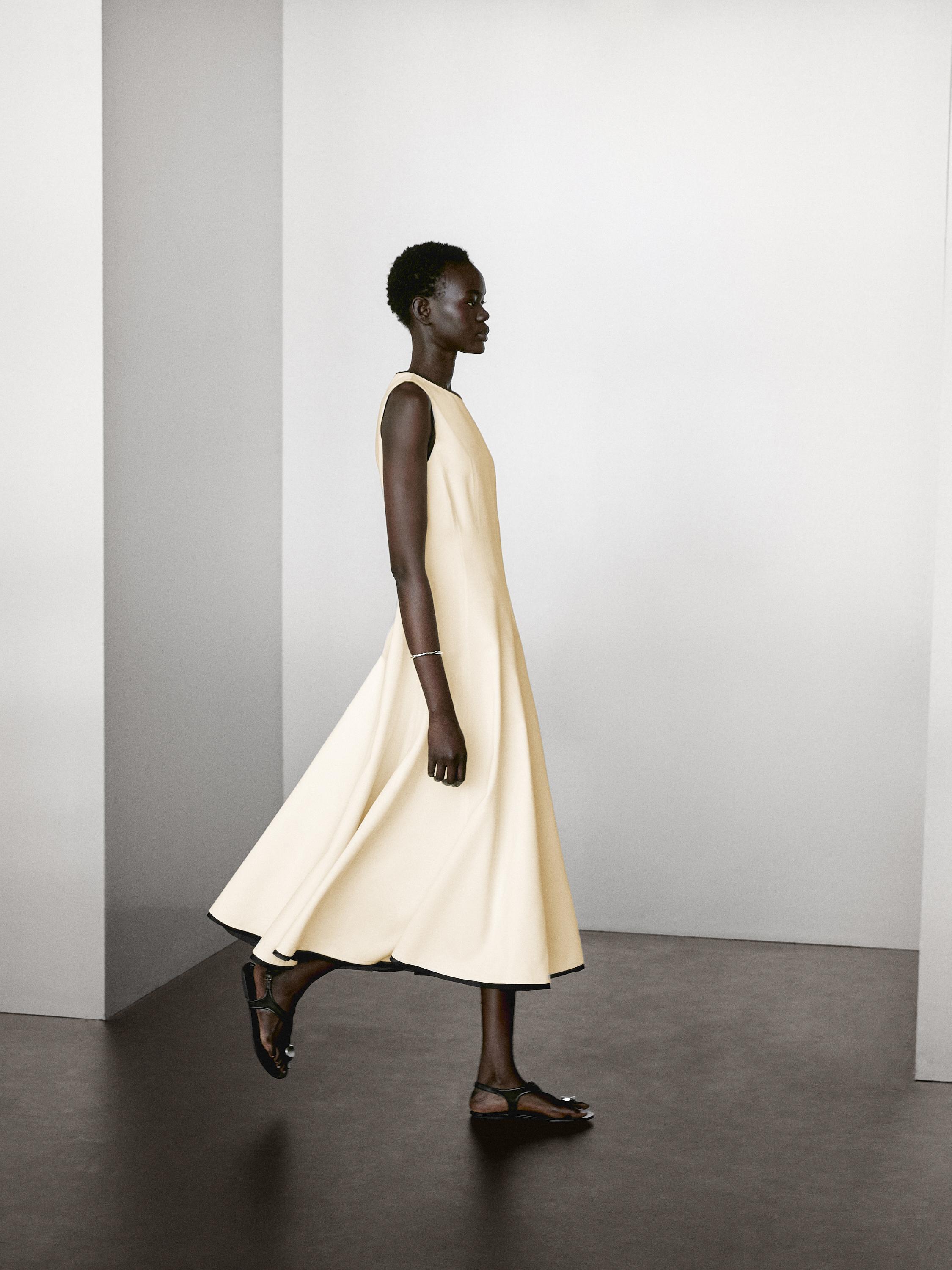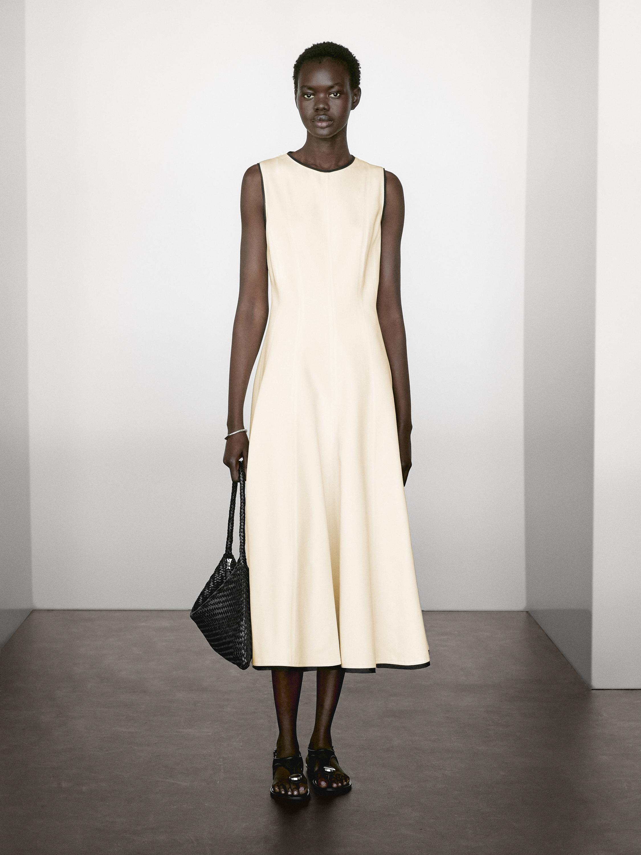 Платье с воланами и контрастной отделкой Massimo Dutti, кремовый 6 368₽