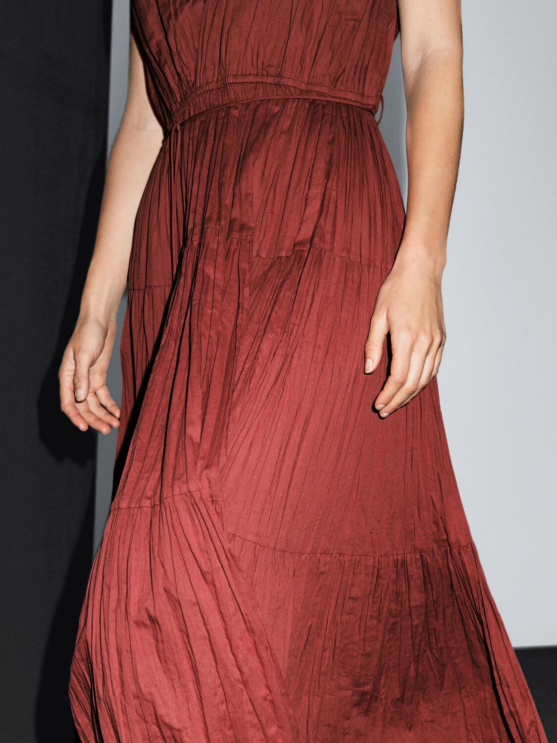 Длинное плиссированное платье из 100% хлопка Massimo Dutti, Russet