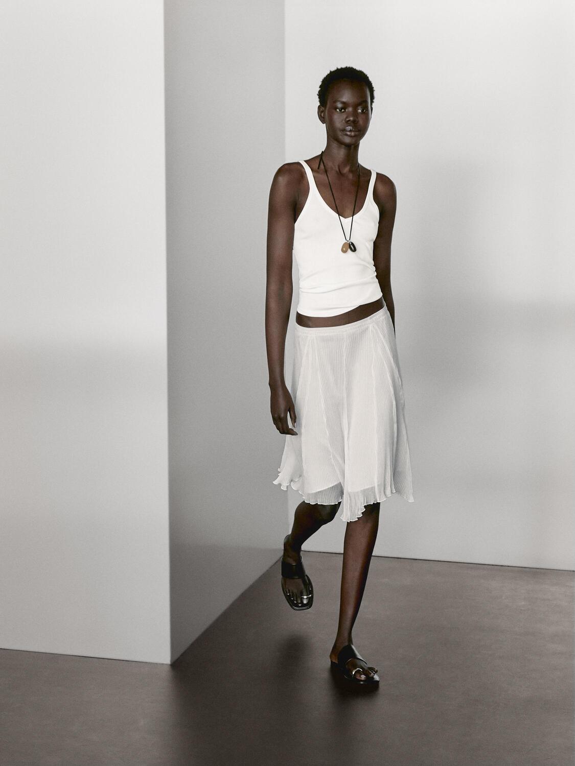 Топ с V-образным вырезом в рубчик Massimo Dutti, кремовый 3 058₽