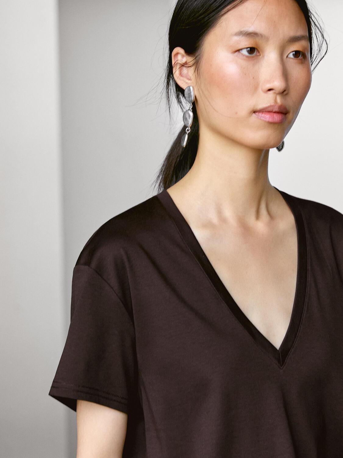 Футболка с V-образным вырезом Massimo Dutti, коричневый 4 502₽