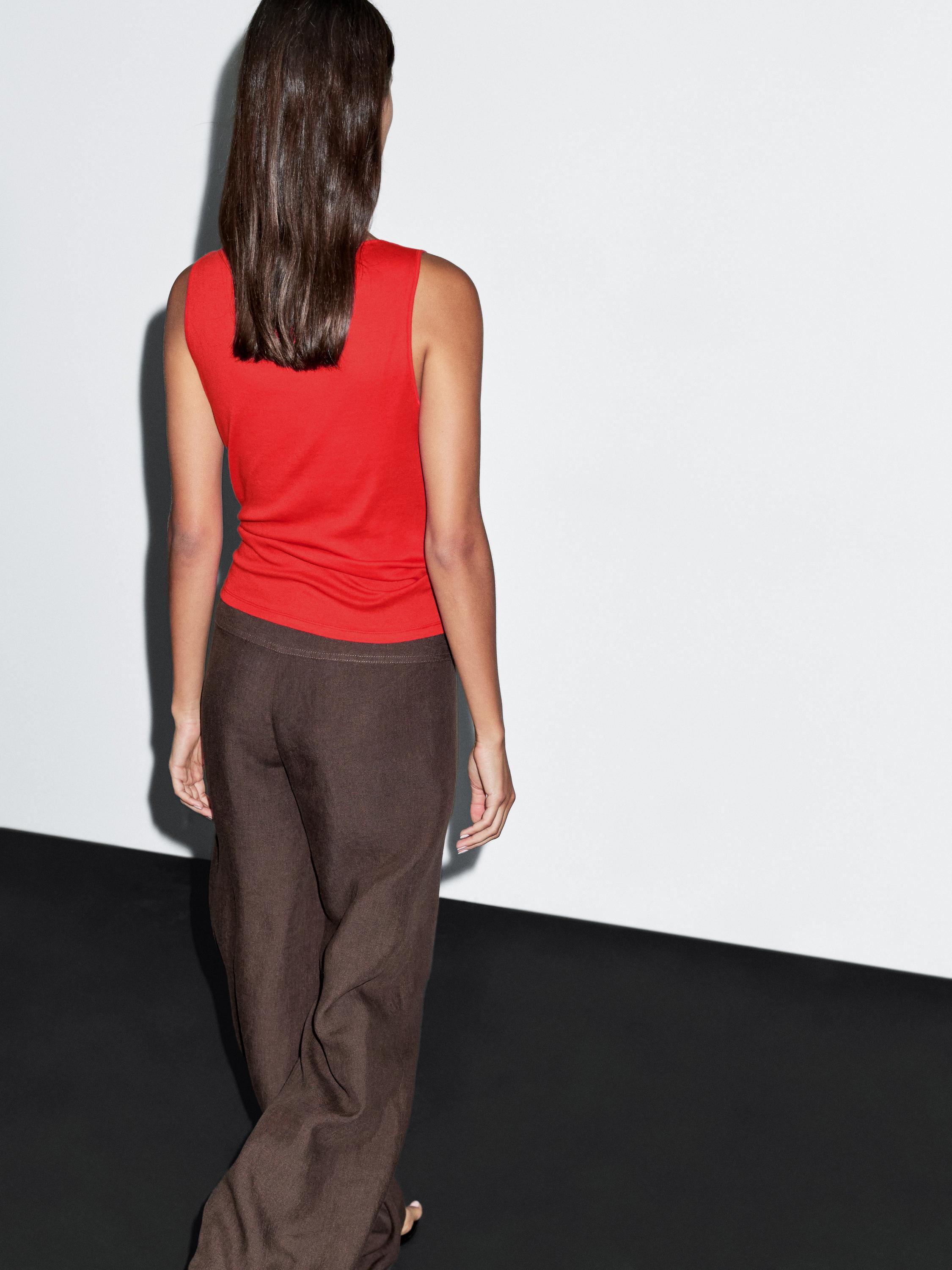Топ из 100% хлопка с драпированным вырезом Massimo Dutti, красный