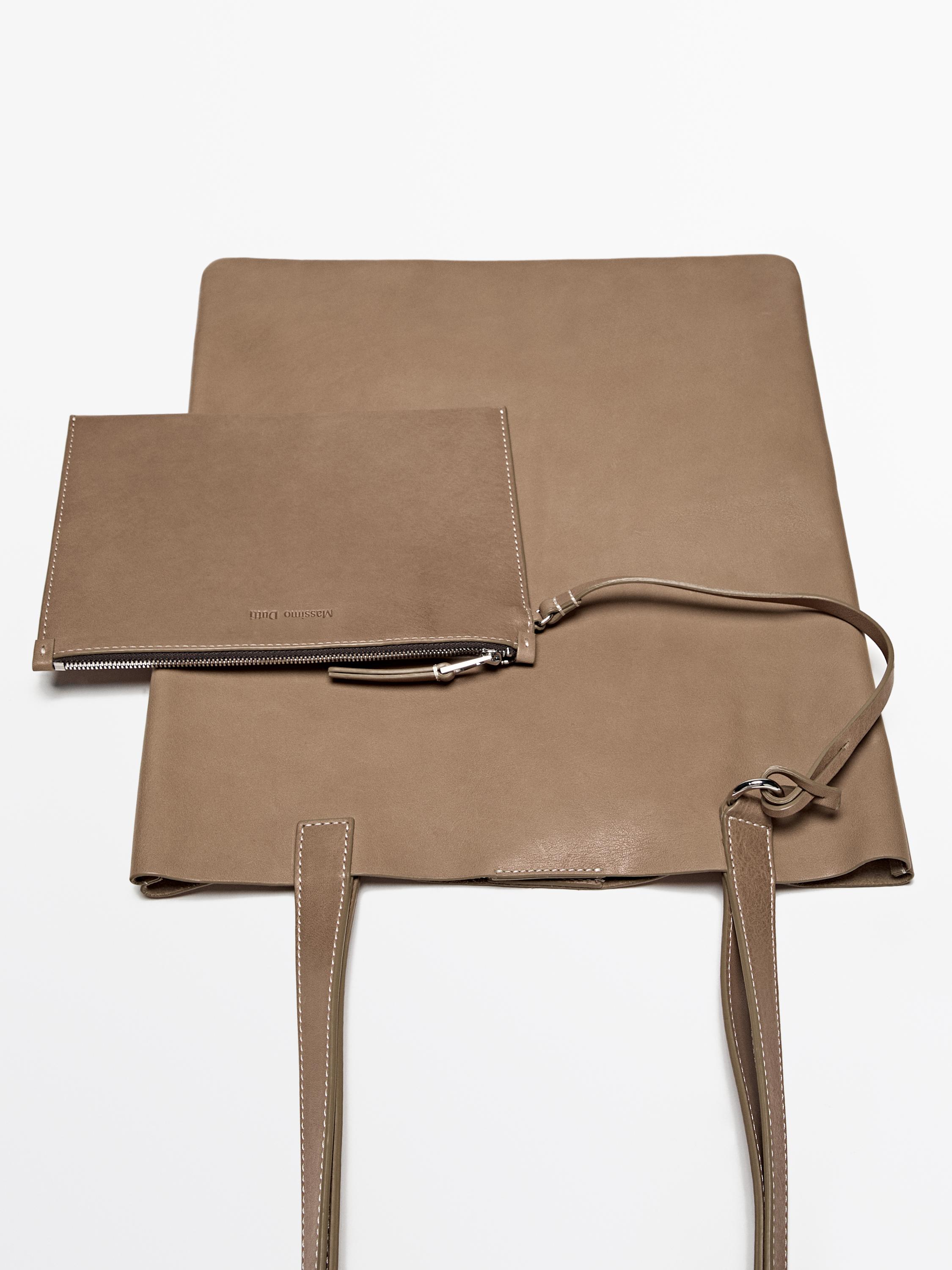 Сумка-Тоут из кожи наппа Massimo Dutti, бежевый