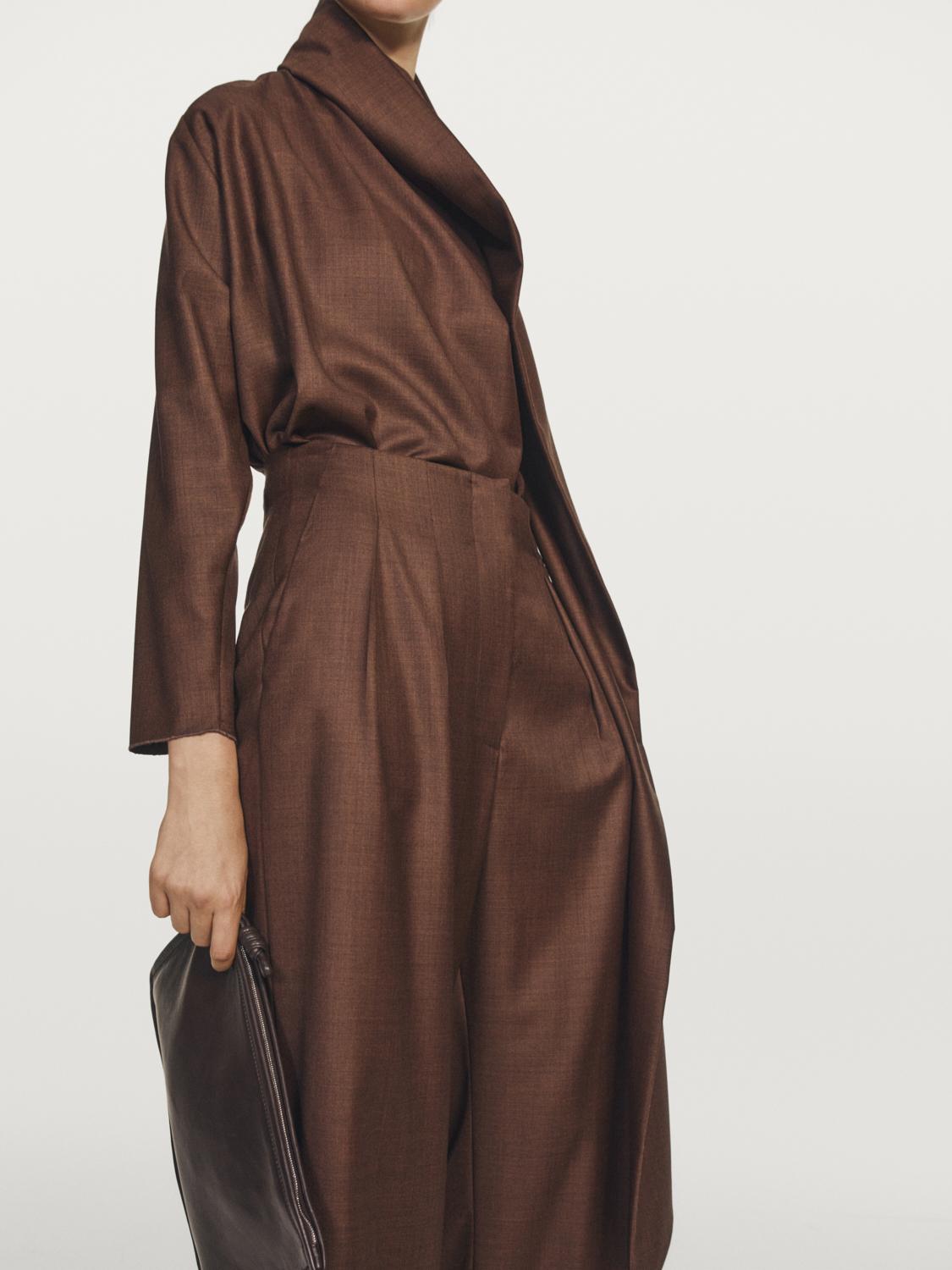 Брюки с вытачками из 100% шерсти - студия Massimo Dutti, Terra-Cotta