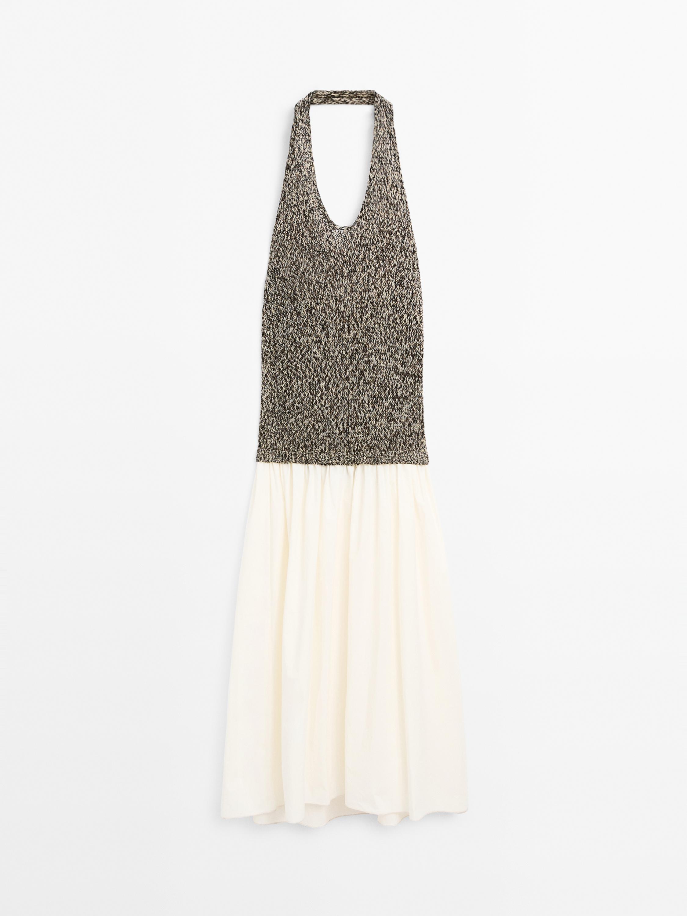 Длинное контрастное платье - студия Massimo Dutti, Vanilla