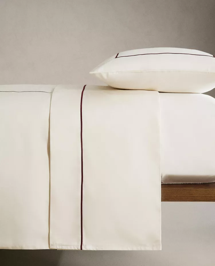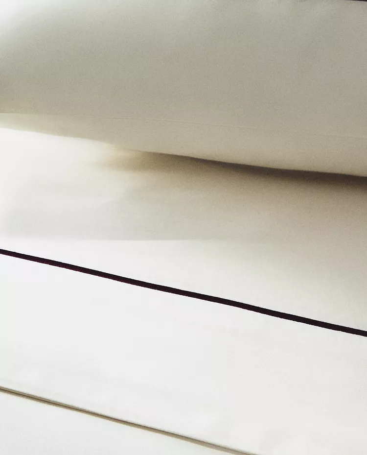 Простыня из хлопкового сатина плотностью 400 нитей с простым рисунком и отделкой.