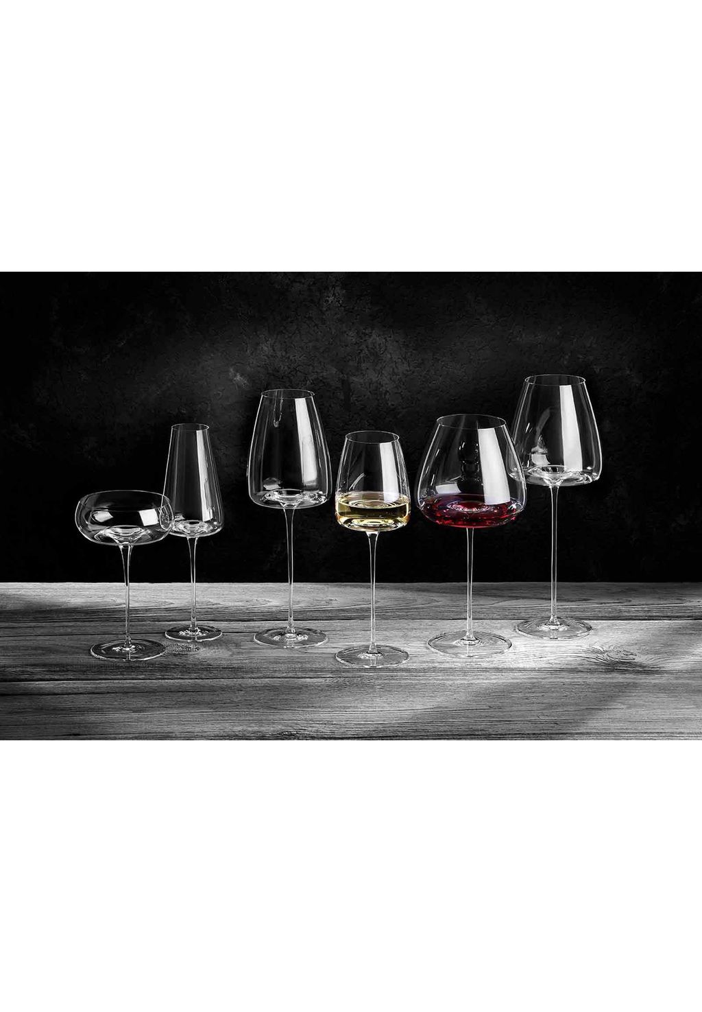«В этой серии нет бокалов для белого или красного вина, а только тематические или характерные бокалы. Названия бокалов также игриво объясняют их возможное применение: вы интуитивно тянетесь к бокалу, который лучше всего представляет вкусовые моменты вина, которые вы особенно хотите подчеркнуть. Если вы хотите, чтобы мощное вино было более гармоничным или немного более живым и свежим, вы выбираете соответствующий бокал, который уже несет свое предназначение в своем названии».