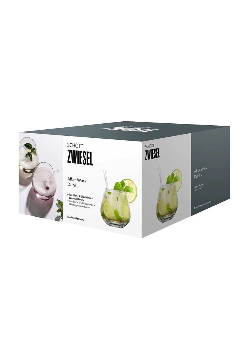 Комплект поставки: 4 коктейльных бокала, 4 соломинки для коктейлей, 1 щетка для мытья посуды