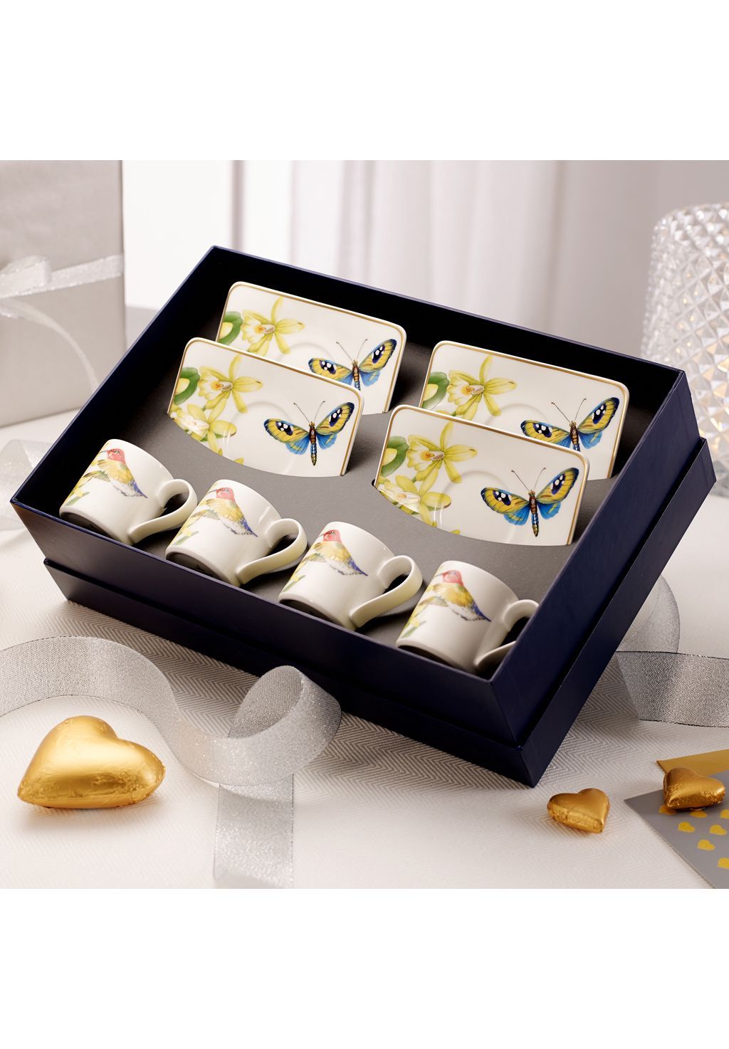 Villeroy & Boch Amazonia - это экстравагантная и угловатая посуда. С декором Amazonia дополняет популярную коллекцию Modern Grace экзотическими яркими красочными мотивами тропического леса. Яркие чашки для эспрессо и мокко из элегантного фарфора придают напитку особый колорит.