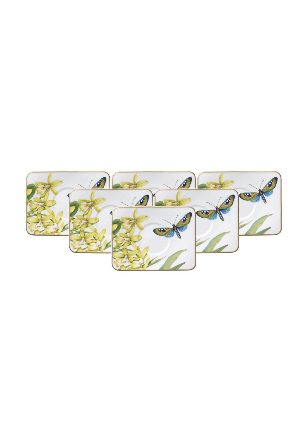 Комплект поставки: 6 прямоугольных блюдец Villeroy & Boch Amazonia для мокка/эспрессо.