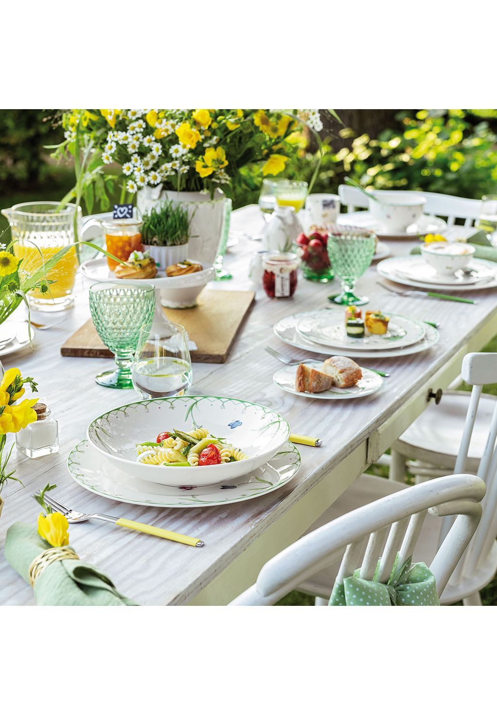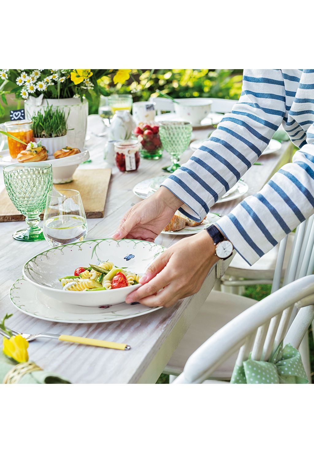 Неподвластная времени коллекция Colorful Spring - “Цветущая весна” будет радовать вас круглый год. Главные герои на изделиях красивой формы — нежные подснежники и яркие бабочки. Они придают коллекции жизнерадостные оттенки и скрашивают каждый скучный момент. Подавайте небольшой салат в этой миске так же стильно, как и вкусные гарниры к воскресному жареному мясу. Чашу также можно использовать как плоскую вазу для фруктов.
