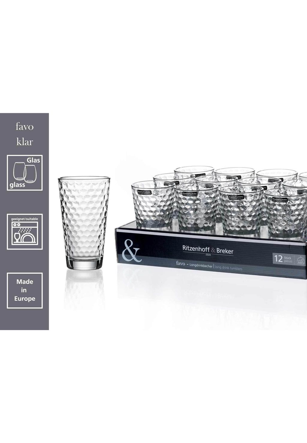 Описание товара: Стакан для лонг-дринков Ritzenhoff & Breker Favo, 400 мл, набор из 12 шт.