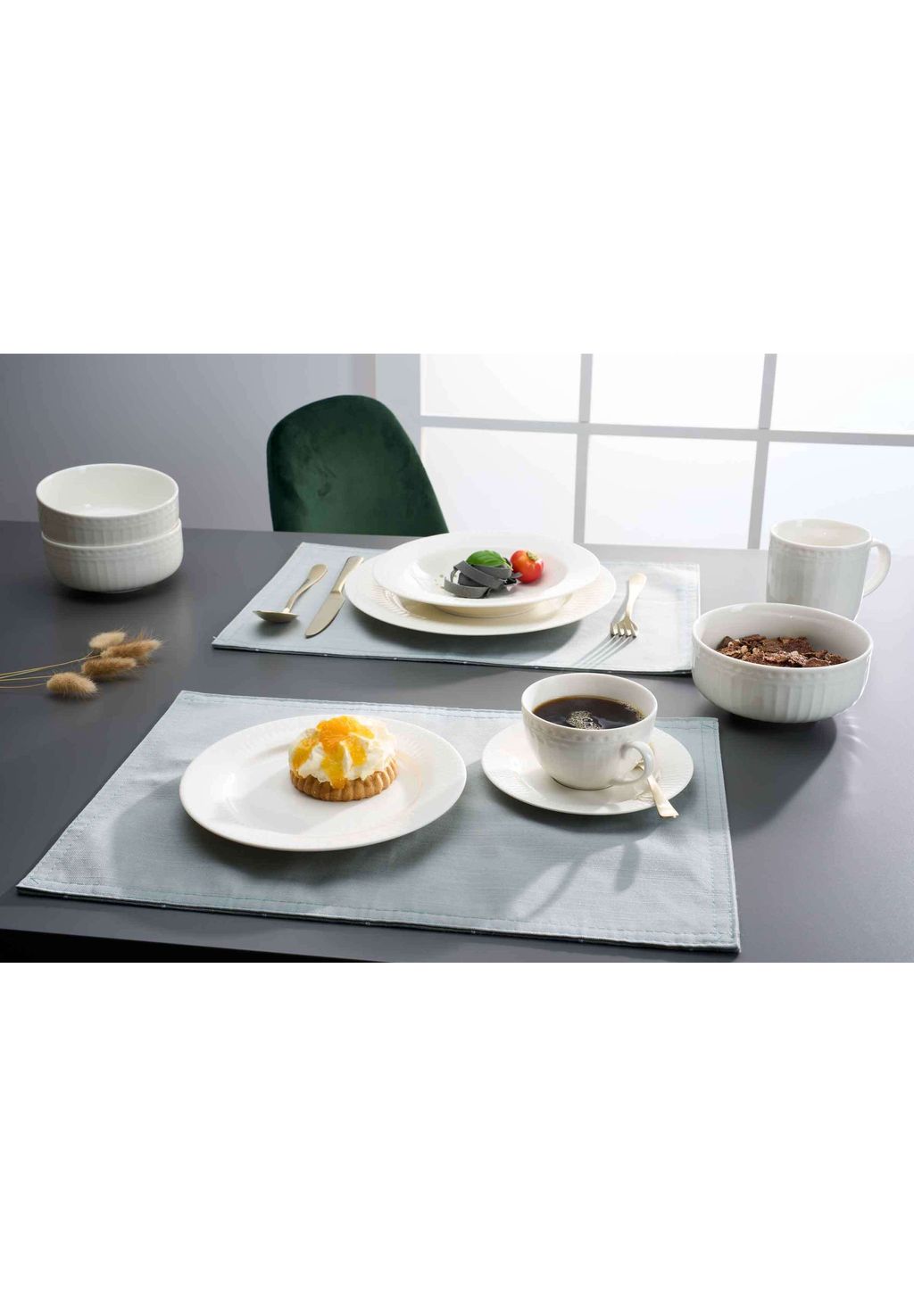 Эксклюзивное качество материала: Тонкая керамика теплого белого цвета придает каждому столу благородную ауру и обеспечивает исключительную долговечность.