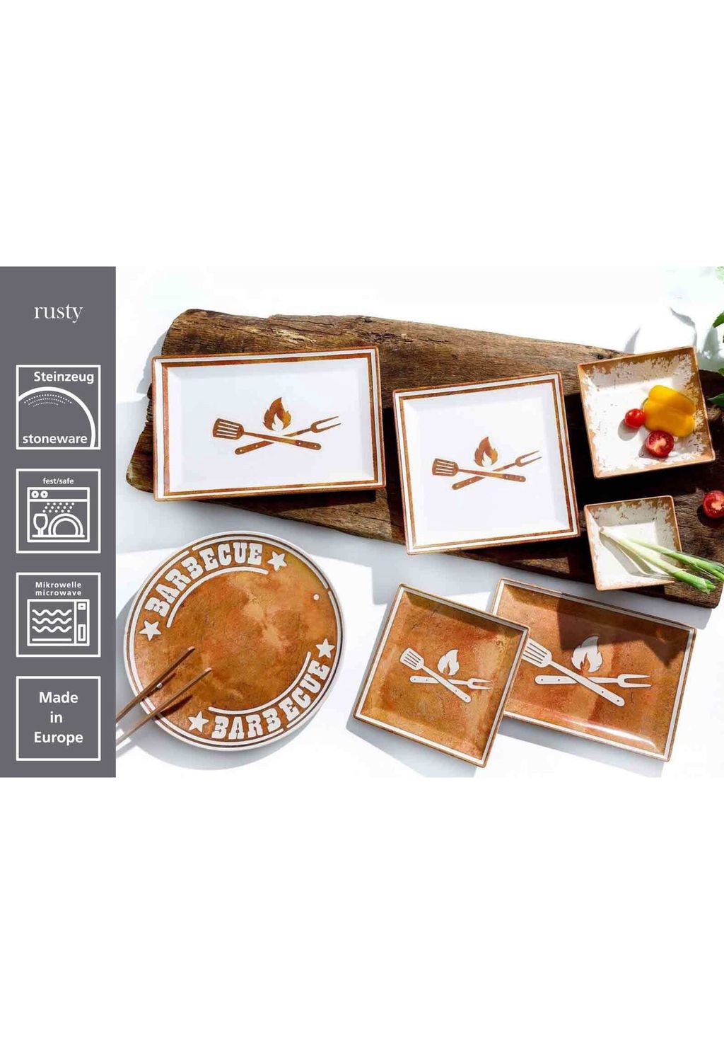 Особенности: Посуда для барбекю в деревенском стиле — идеально подходит для десертов, закусок или небольших основных блюд на праздничных вечерах с барбекю, будь то в саду, на террасе или в столовой.