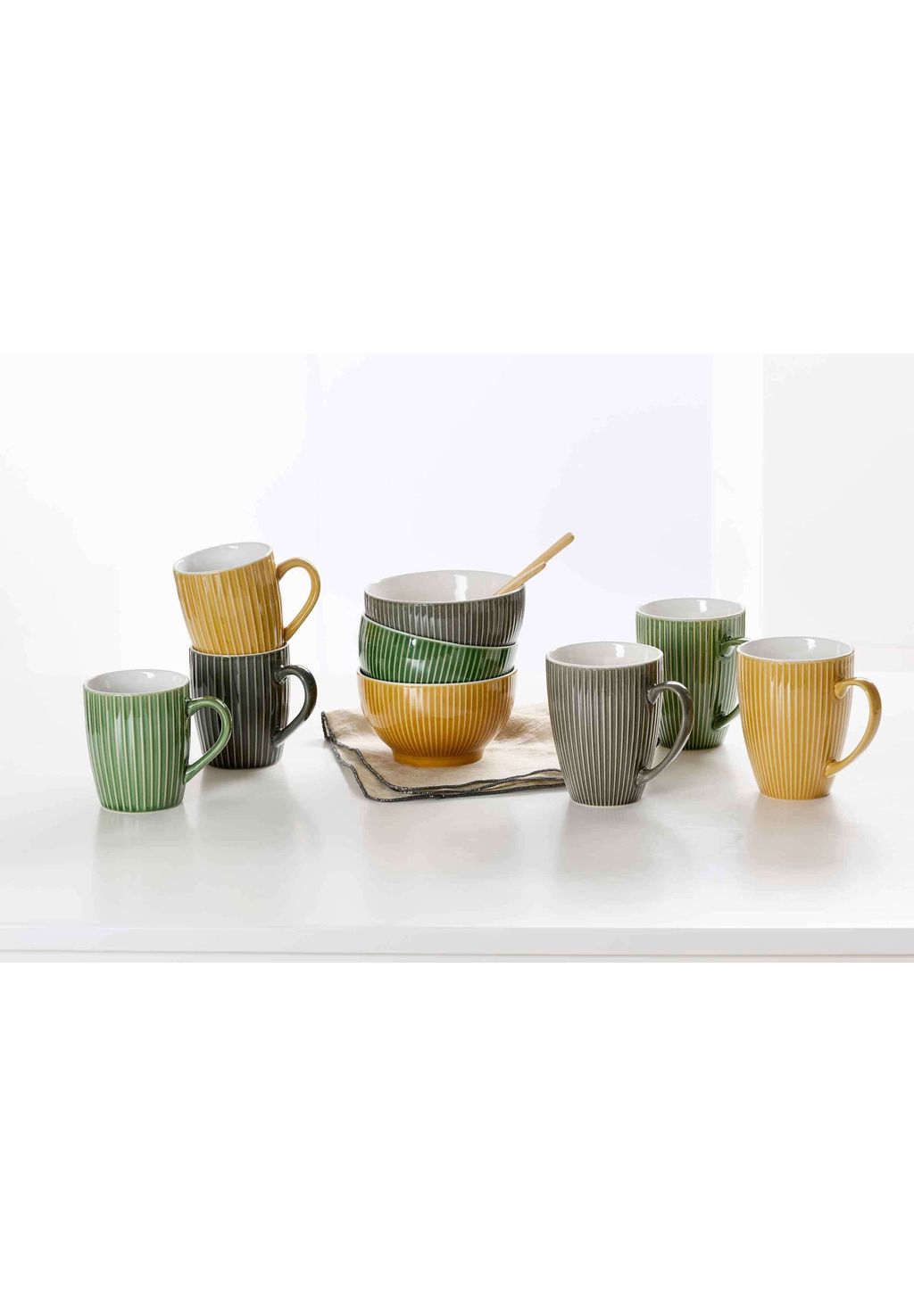 Всё дело в миксе! Карри, базилик и перец — благодаря красивым оттенкам специй и рельефному узору в тонкую полоску эта посуда для завтрака Umea сервирует стол невероятно изысканно.