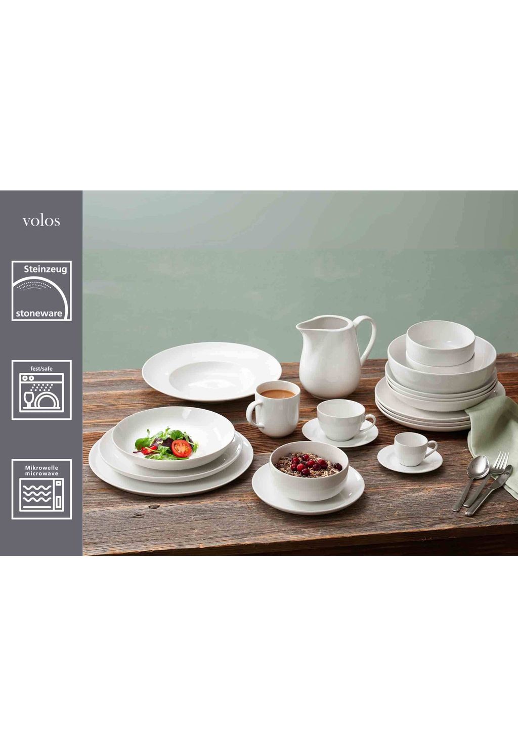 Volos впечатляет своим привлекательным дизайном, сочетающим классические и современные элементы стиля в мягких, органических линиях. Это делает белую посуду вневременным простым спутником, который приятно вписывается в атмосферу стола и всегда придает еде стильную сервировку.