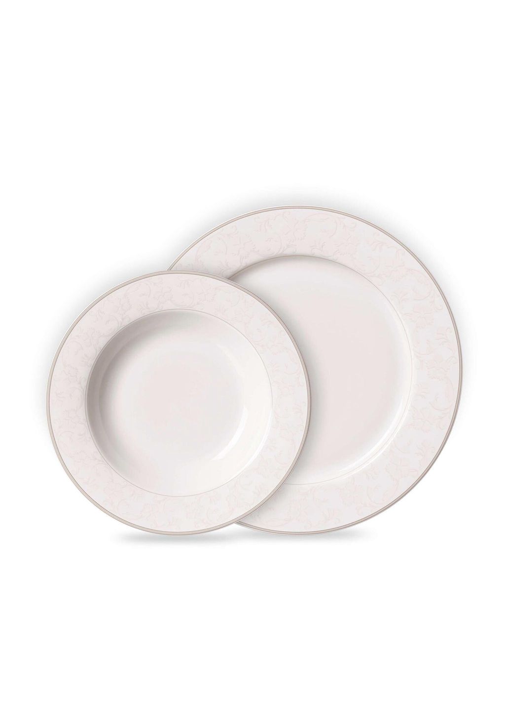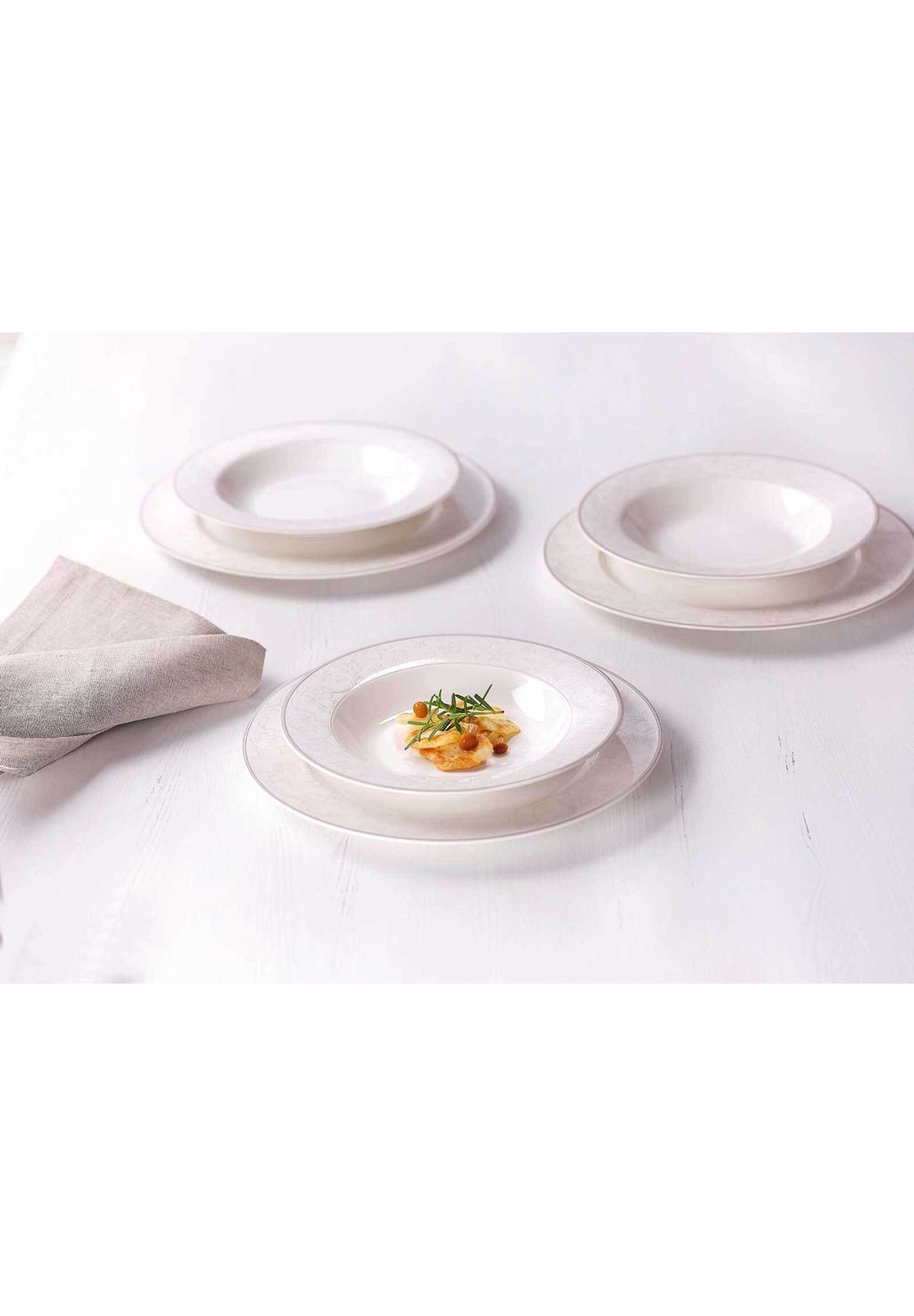 Набор из 12 предметов на 6 персон - В набор входят 6 больших обеденных тарелок (Ø 27 см) и 6 глубоких суповых тарелок (Ø 21,5 см), идеально подходящих для стильных обедов в повседневной жизни или для особых случаев.