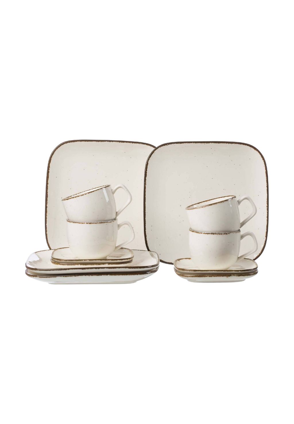 Идеально подходит для наслаждения кофе — в набор из 12 предметов входят 4 кофейные чашки (200 мл), 4 подходящих блюдца (13,5 см) и 4 тарелки для завтрака (22,5 см) для стильных кофейных посиделок.