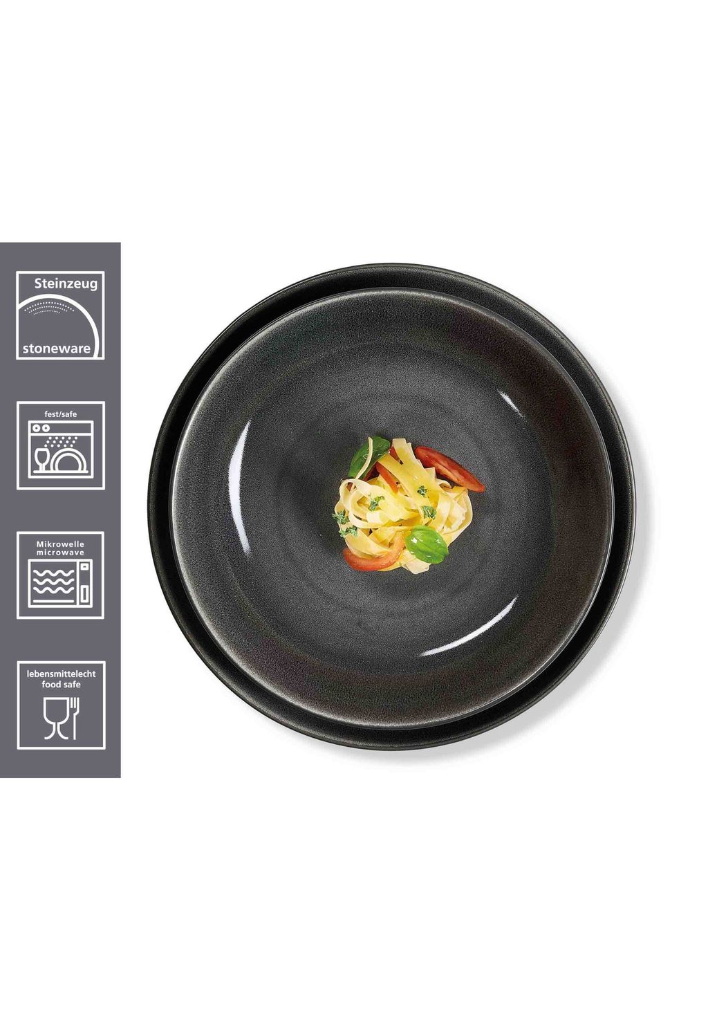 Особенности: Яркий дизайн: Набор тарелок Toledo впечатляет современной формой Coupe с матовой отделкой графитово-серого цвета снизу и блестящими, уникальными поверхностями.