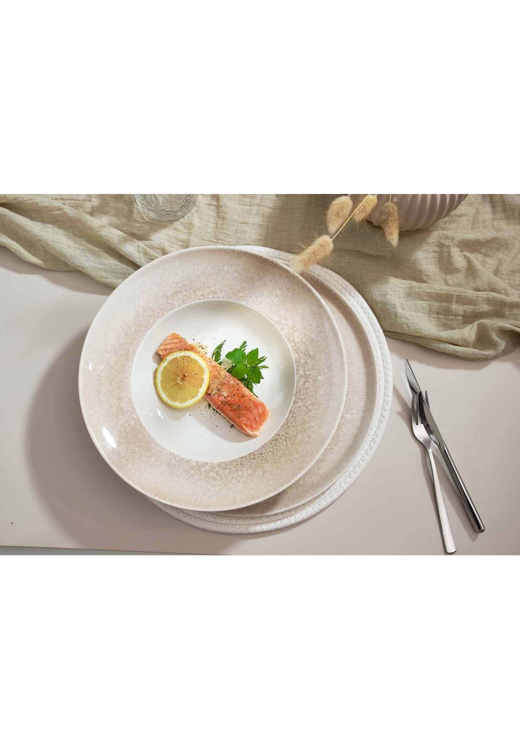 Универсальные сочетания — Благодаря нежным натуральным тонам набор гармонично сочетается с другими сериями посуды и украшениями стола.