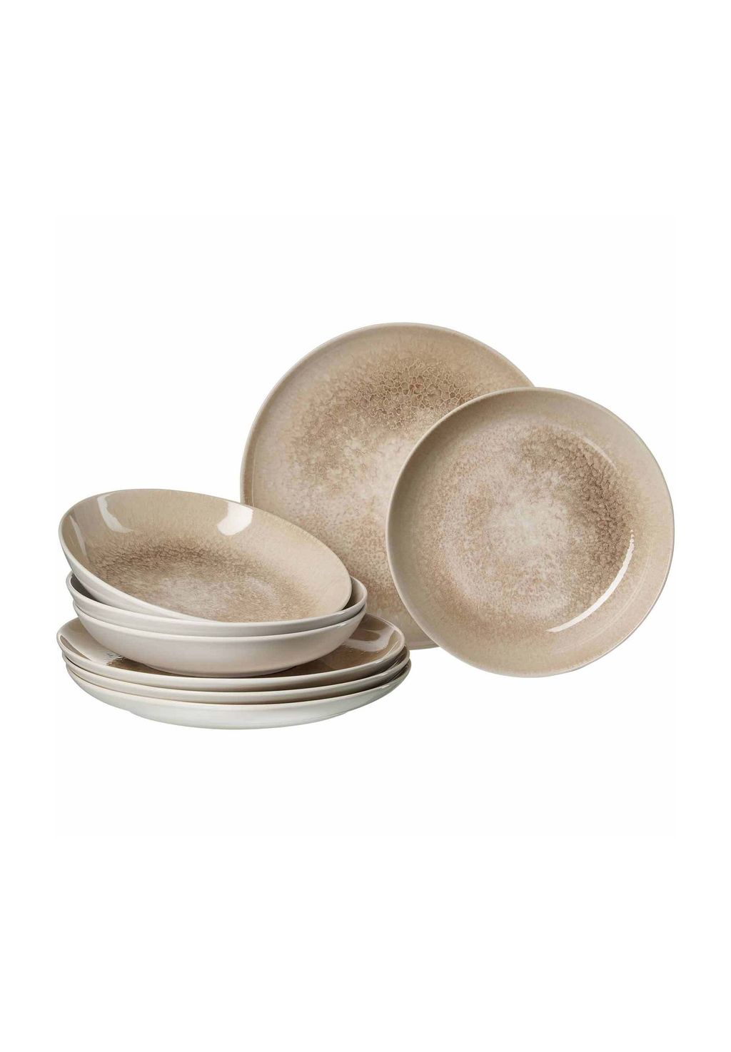 Набор из 8 предметов на 4 персоны — Состоит из 4 обеденных тарелок (ø прибл. 27,5 см) и 4 глубоких суповых тарелок (ø прибл. 23 см), идеально подходит для повседневного использования или особых случаев.