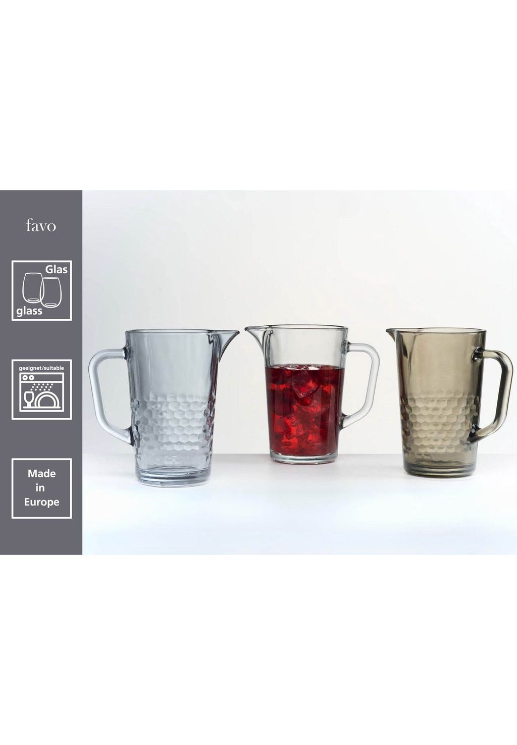 Идеальная подача: элегантный кувшин Favo с внутренней отделкой в виде сот, создающей декоративный световой эффект. Он украшает воду, шпритцер, холодный чай, сок и другие необычные напитки в красивой рамке.
