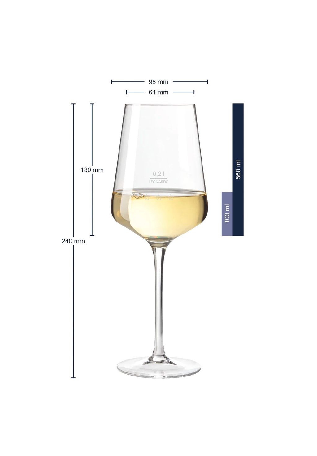Описание товара: Leonardo Puccini *Gastro-Edition*: Бокалы для белого вина с отметкой наполнения 0,2 литра и контрольной линией (звездочкой) на 0,1 литра, набор из 6 штук. Получите полное наслаждение с этим изысканным бокалом для белого вина из серии PUCCINI. Благодаря своему итальянскому колориту, Leonardo олицетворяет наслаждение и распространяет позитивное, беззаботное отношение к жизни. Превосходное качество: обладая долговечным блеском и прозрачностью, изделия Teqton впечатляют благодаря улучшенной твердости поверхности. Это делает их особенно прочными и устойчивыми к царапинам. Бокал для белого вина из серии PUCCINI также можно мыть в посудомоечной машине. Зачем откладывать? Не ждите больше, просто заказывайте. Воспользуйтесь преимуществами этого практичного бокала для белого вина. Калиброванные бокалы для белого вина особенно интересны для сферы общественного питания, поскольку они имеют калиброванную линию наполнения 0,2 литра и даже звездочку на 0,1 литра.