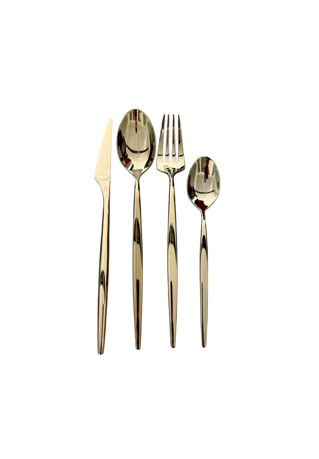 Описание товара: Этот элегантный набор столовых приборов из 24 предметов, выполненный в роскошном цвете шампанского золота, привнесет элегантность и блеск в любой стол. Изготовленный из высококачественной нержавеющей стали 18/10, набор отличается особой прочностью, устойчивостью к коррозии и лёгкостью в уходе. Стильная золотая отделка придает столовым приборам роскошный вид и делает их идеальными как для особых случаев, так и для повседневного использования.