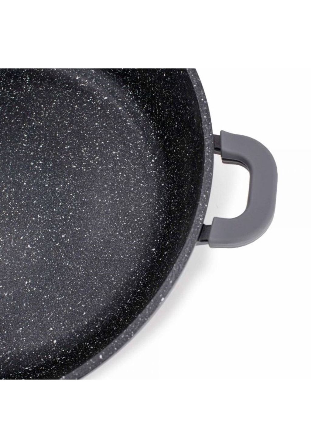 Она изготовлена из литого алюминия и имеет трехслойное мраморное покрытие и съемные силиконовые ручки.