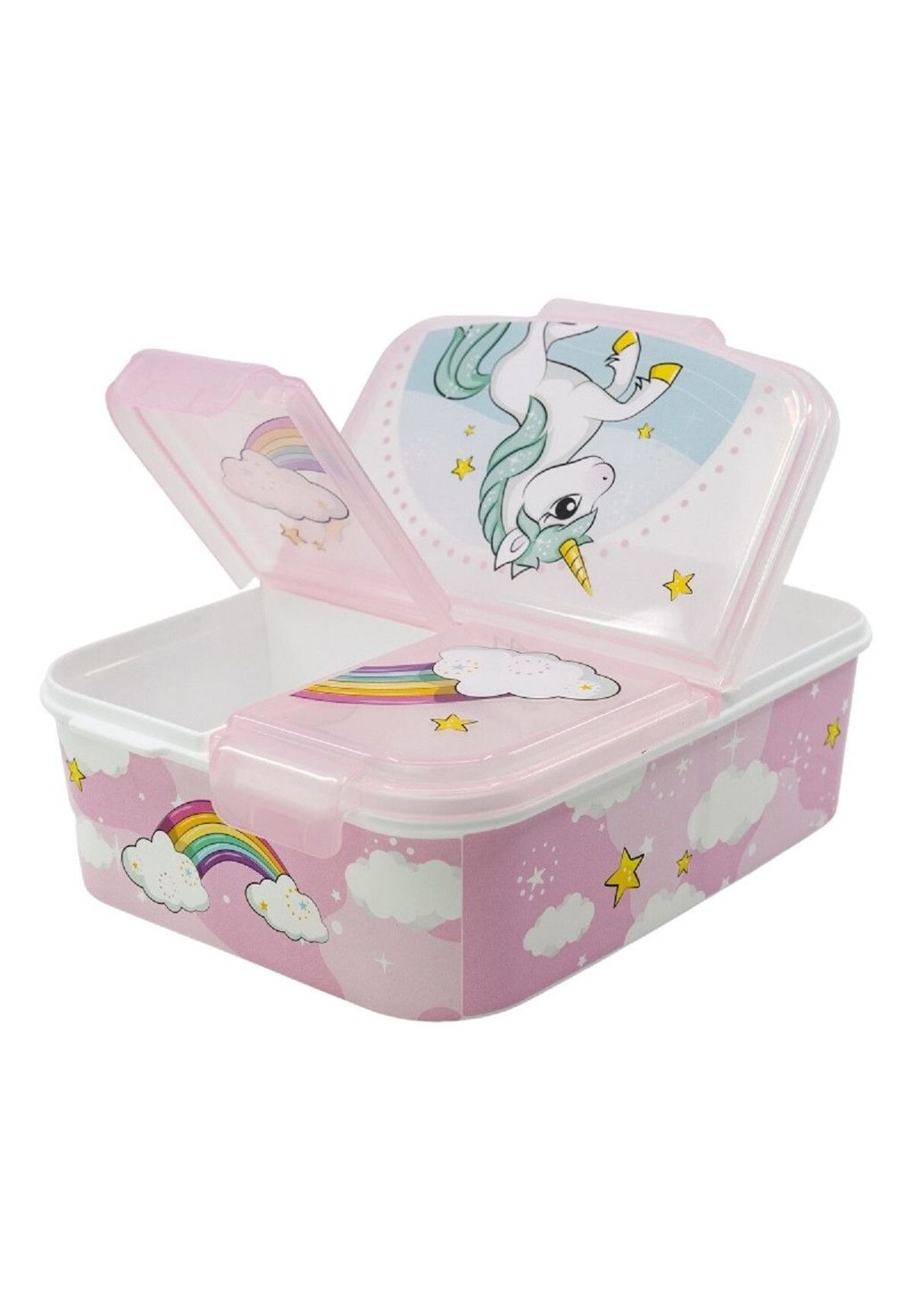 Описание товара: Этот детский ланч-бокс с 3 отделениями вмещает сэндвичи, фрукты и закуски. Прочный, легко открывается и идеально подходит для школы, экскурсий или детского сада. Рекомендуется мыть руки.