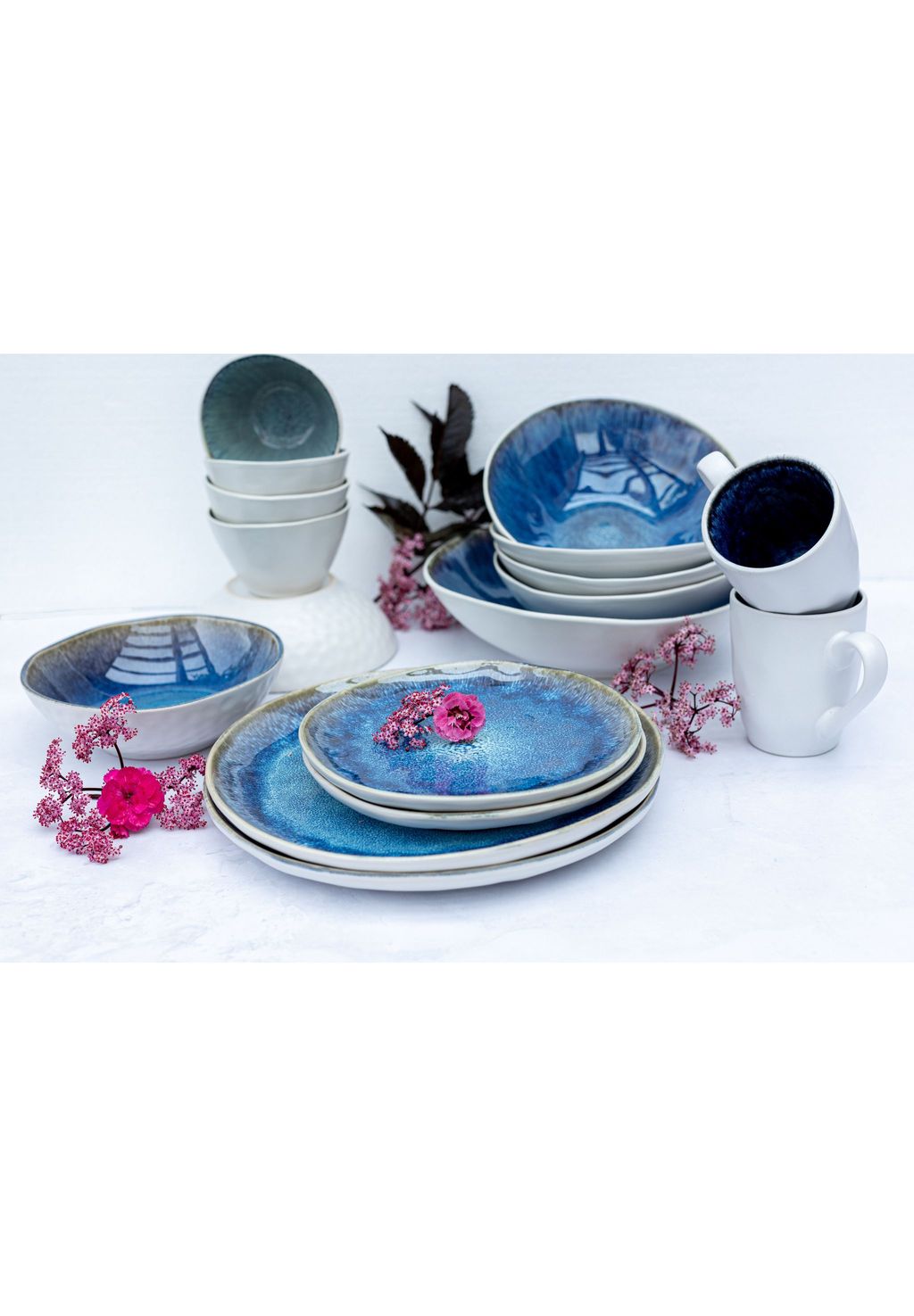 Этот сервировочный набор мисок или мисок для закусок, глазированный вручную, изготовлен из толстостенной каменной керамики (высококачественный вид керамики) современной неровной формы.