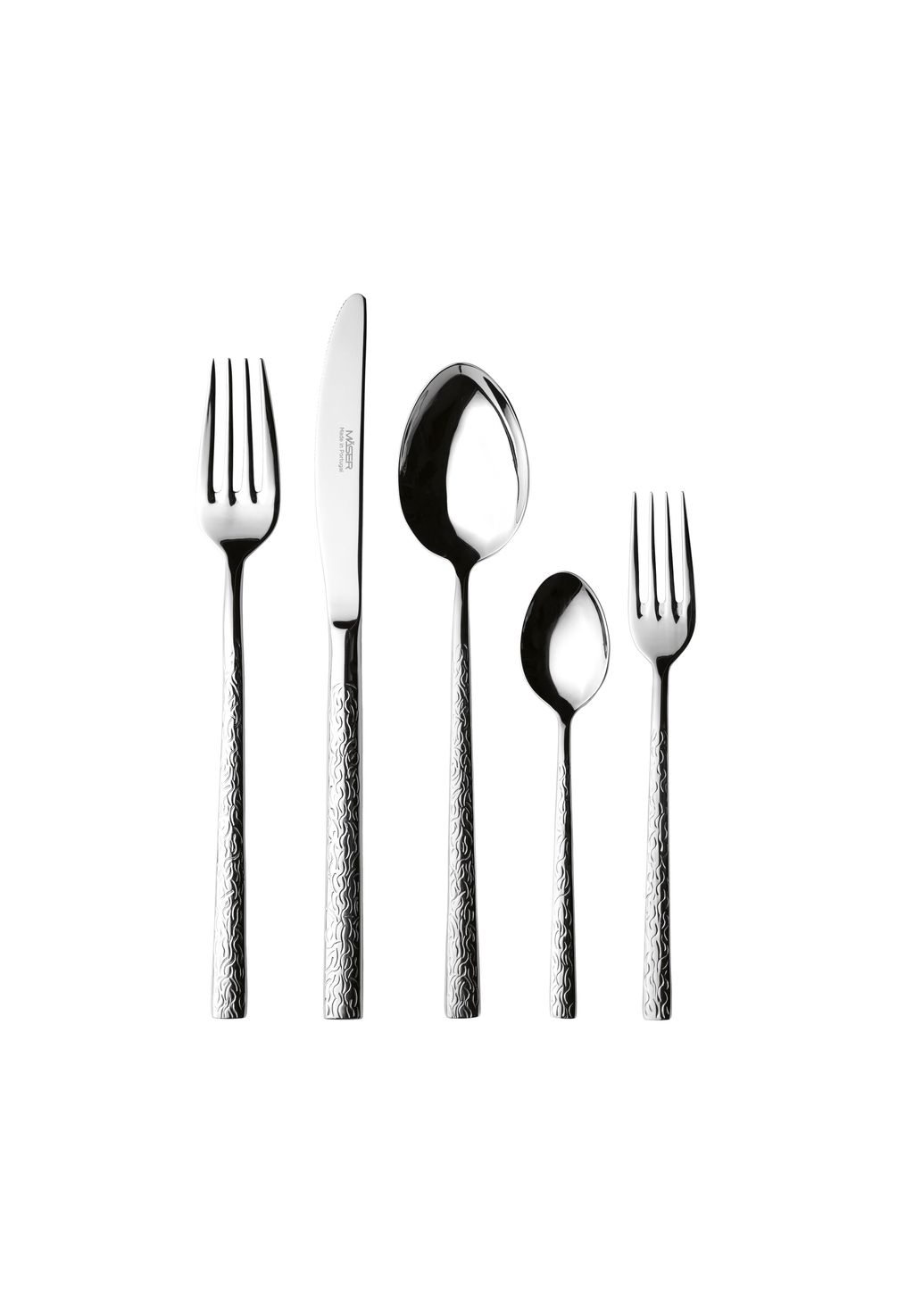 Особый рельефный узор на тонкой ручке придает набору столовых приборов особый характер.