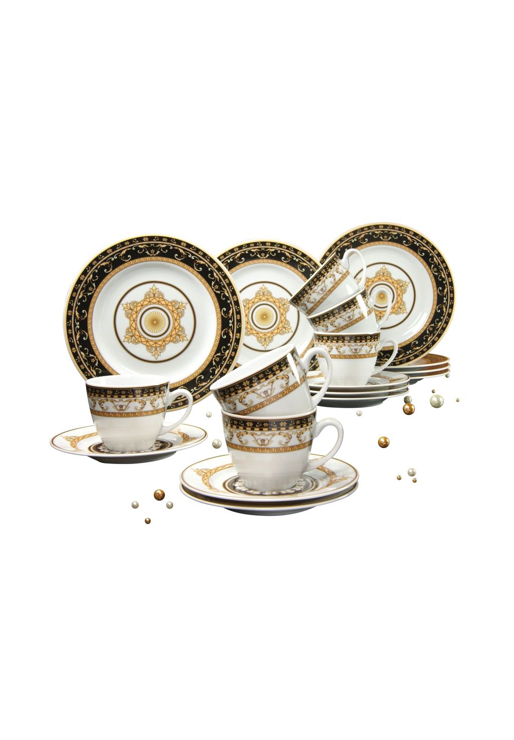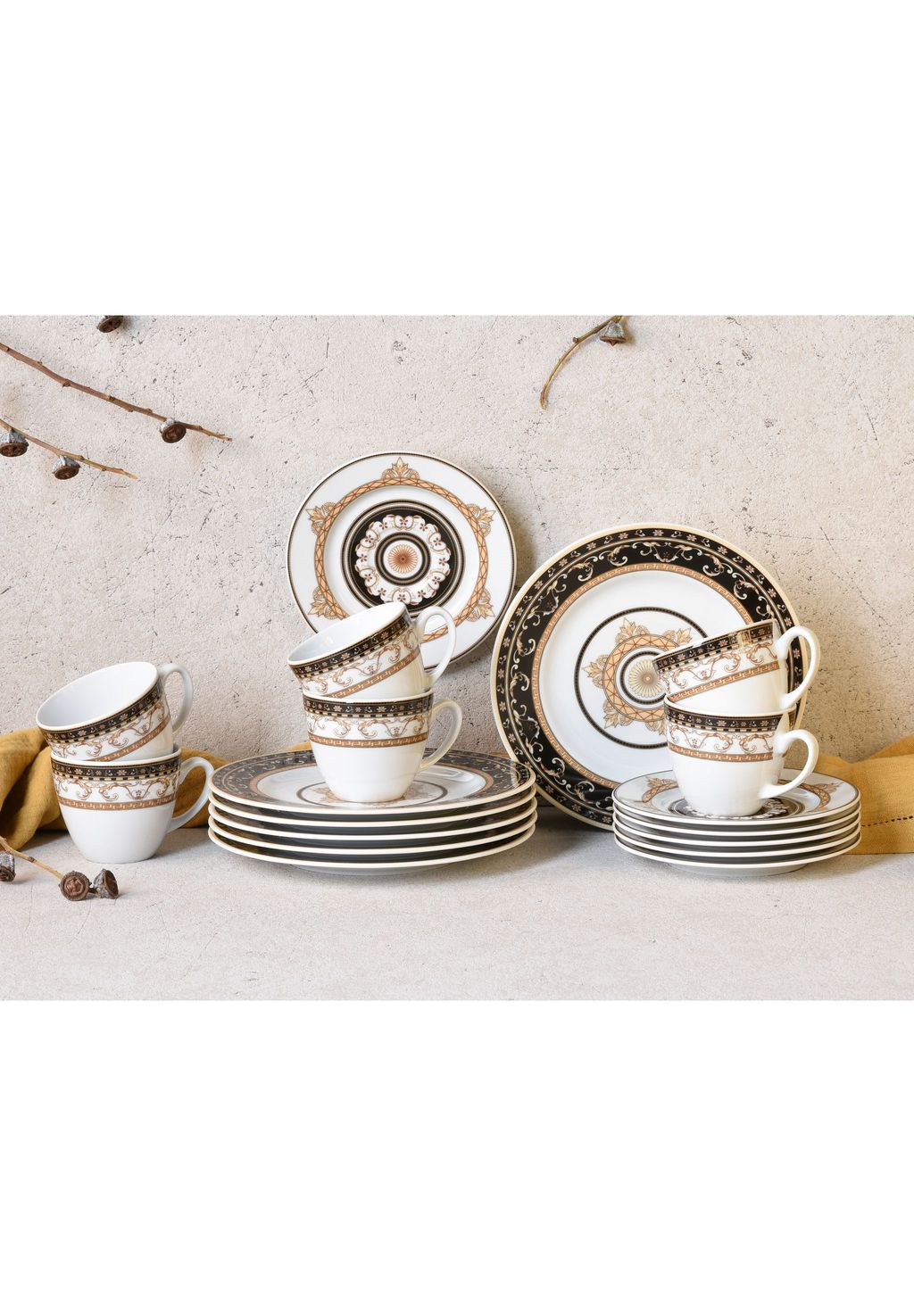 Особенности: КОФЕЙНЫЙ СЕРВИЗ: Кофейный сервиз из 18 предметов включает 6 десертных тарелок (Ø 21 см), 6 чашек (200 мл) и 6 блюдец (Ø 14 см).