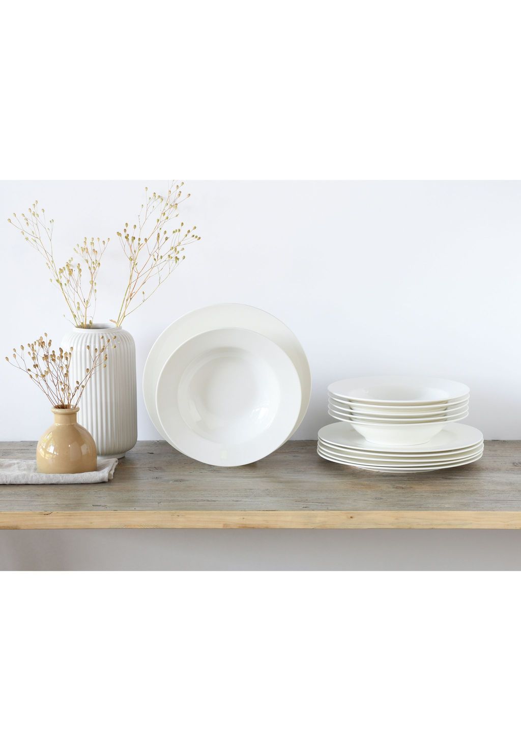 Описание товара: ОБЕДЕННЫЙ СЕРВИЗ: Этот обеденный сервиз из 12 предметов включает 6 обеденных тарелок (27 см) и 6 суповых тарелок (22,5 см). КЛАССИКА В БЕЛОМ ЦВЕТЕ: Высококачественная кремово-белая столовая посуда в традиционной форме флага. Белый цвет всегда работает! ПРИЯТНО: Очень тонкий, легкий и полупрозрачный с элегантным корпусом. И к тому же веганский благодаря типу использованного сырья. УСТОЙЧИВАЯ РАДОСТЬ: Этот набор столовых приборов будет сопровождать вас в течение всего дня — будь то завтрак, обед, ужин или перекус. Он исключительно прочный, его можно мыть в посудомоечной машине и использовать в микроволновой печи. КАЧЕСТВО ФИРМЫ: Наша посуда разработана в Германии и производится на избранных премиальных фабриках, чтобы обеспечить качество, которое вы хотите для своего дома. Кроме того, замена разбитых тарелок обычно предоставляется оперативно и на долгие годы!