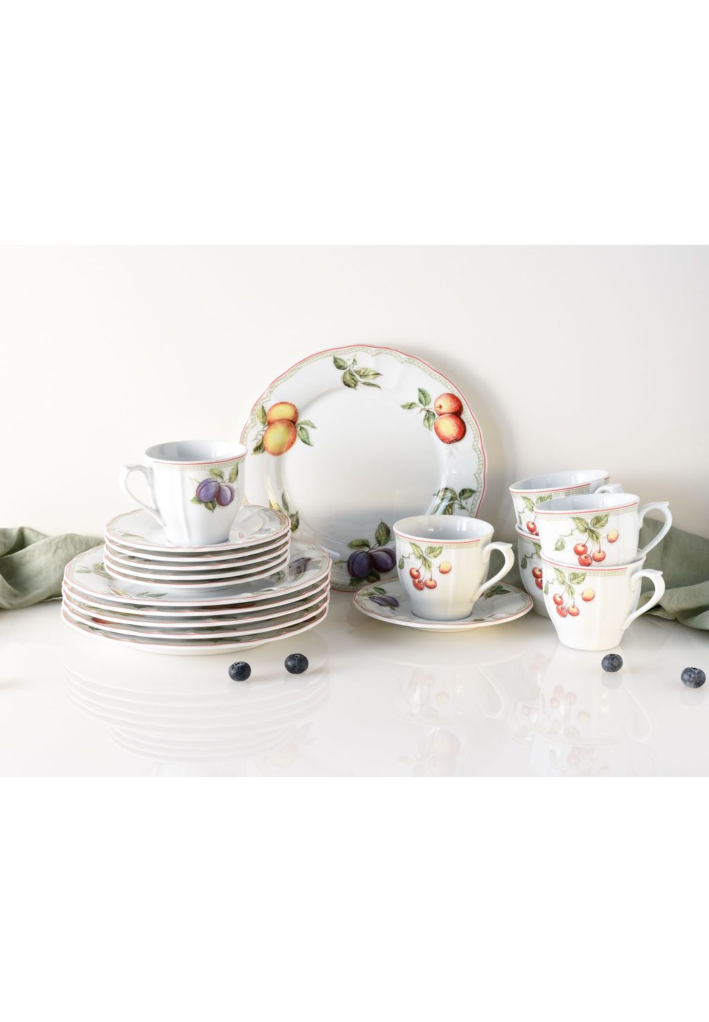 Комплект поставки: 6 десертных тарелок 21 см | 6 кофейных чашек 200 мл | 6 кофейных блюдец 14,5 см