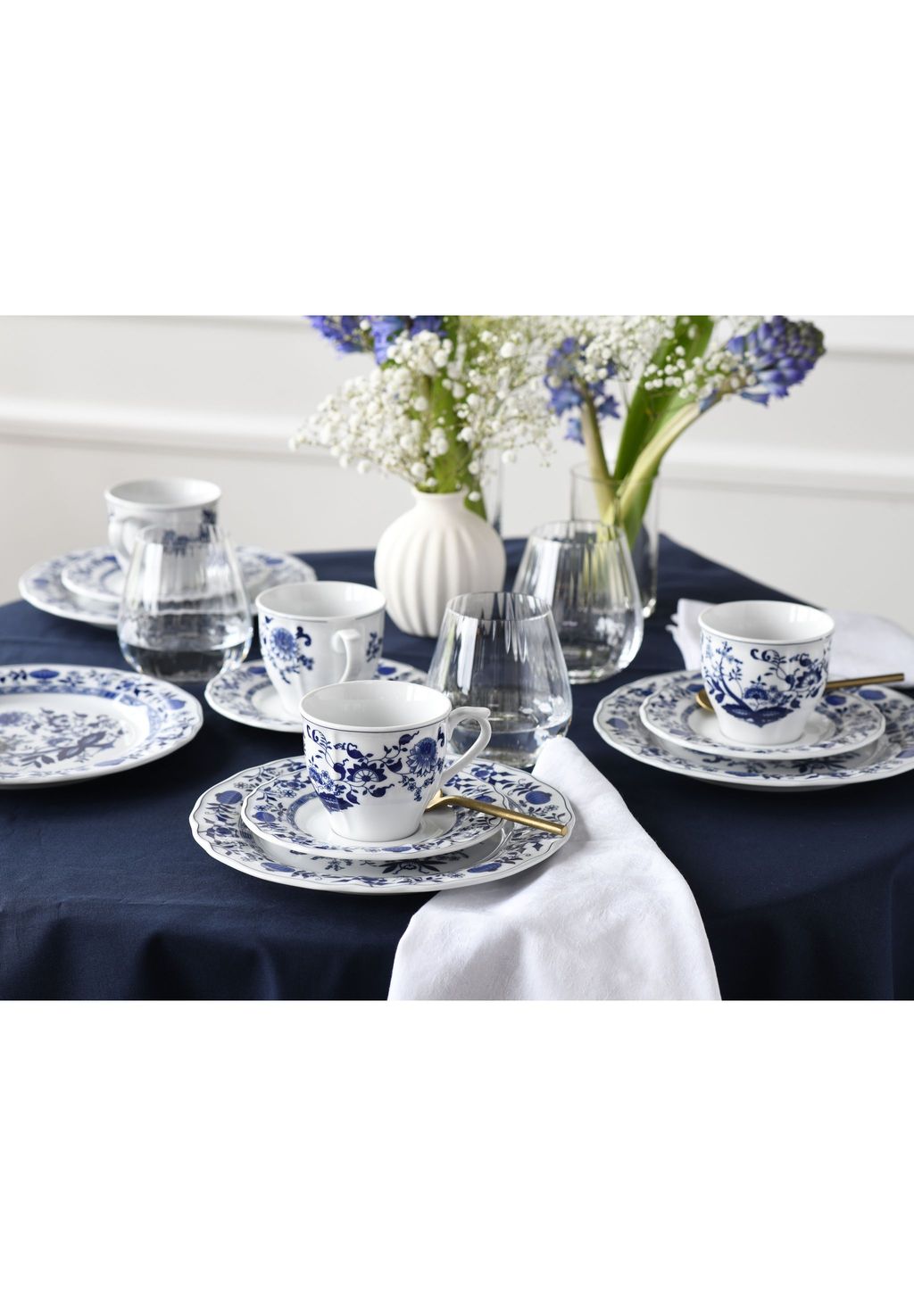 МОДНЫЙ ДИЗАЙН: Посуда украшена классическим луковым узором в романтическом стиле загородного дома.