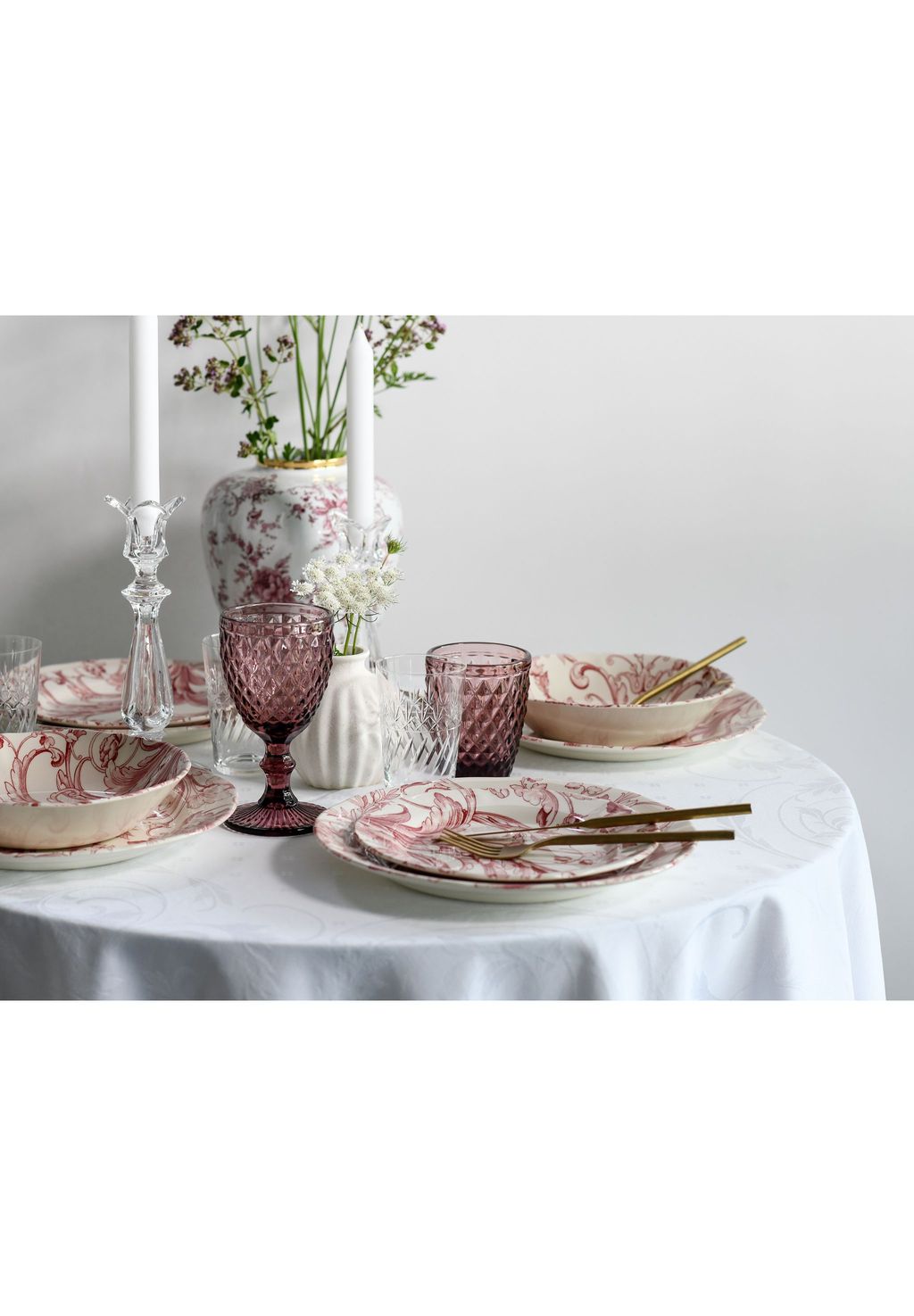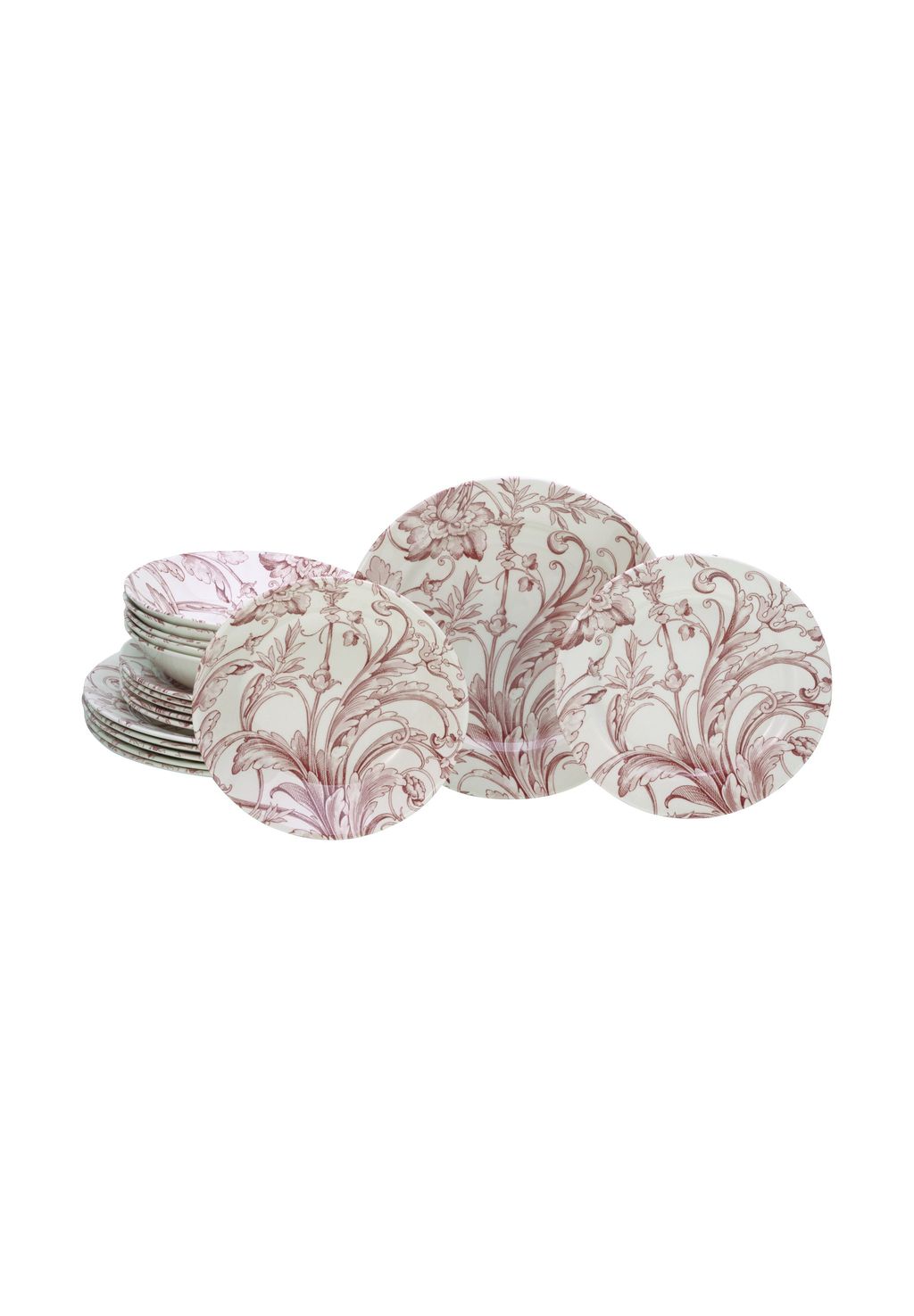Комплект поставки: 6 обеденных тарелок 26,5 x 26,5 x 2,5 см, 580 г | 6 десертных тарелок 21 x 21 x 2,5 см, 350 г | 6 суповых тарелок 20 x 20 x 4,5 см, 400 г, 500 мл