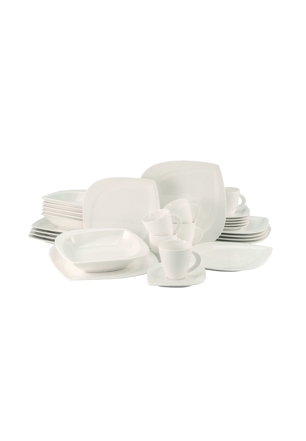 Особенности: ПОЛНЫЙ НАБОР XL: В состав сервиза из 30 предметов входят 6 обеденных тарелок (Ø 26,5 см), 6 суповых тарелок (Ø 23 см), 6 десертных тарелок (Ø 22 см), 6 чашек (20 сл) и 6 блюдец 15 см. Вот как работает XL!