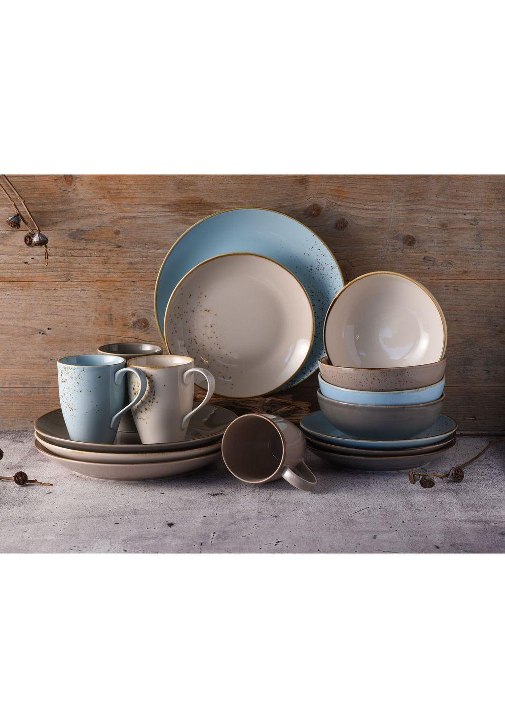 Комплект поставки: 4 обеденные тарелки 27 см | 4 десертные тарелки 21 см | 4 многофункциональные миски 16,5 см | 4 кофейные кружки 300 мл