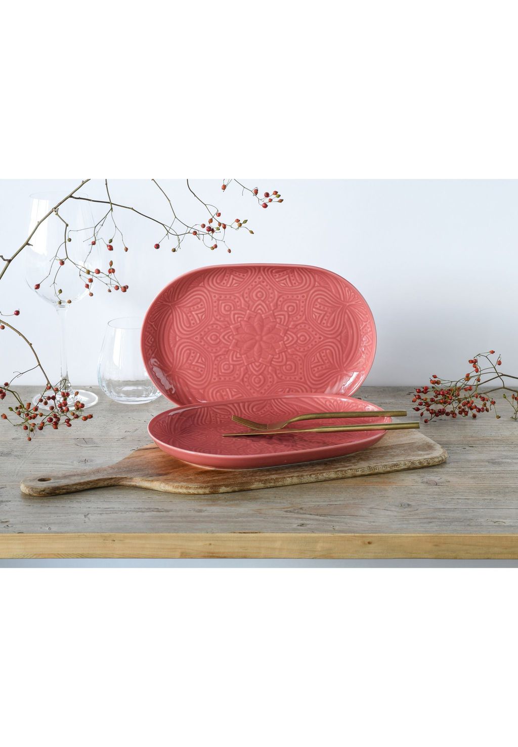 Особенности: ЭЛЕГАНТНЫЙ НАБОР ТАРЕЛОК: Вы получите красивый набор из 2 предметов элегантной овальной формы диаметром 28 см.