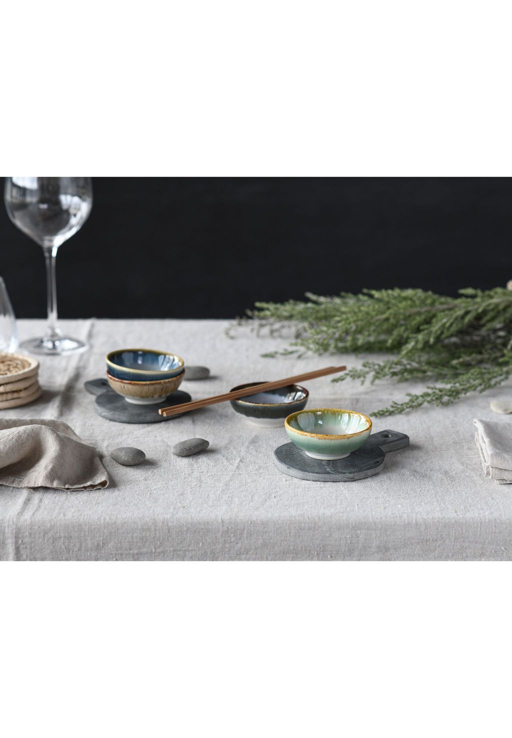 Особенности: ЧАШИ РУЧНОЙ РАБОТЫ: 4 дизайнерских предмета ждут, чтобы украсить ваш стол. В набор входят 4 соевые миски (Ø 8 см).
