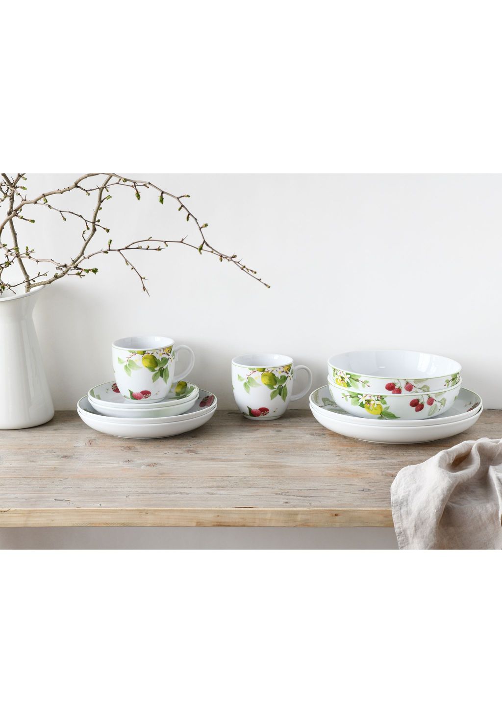 Комплект поставки: 2 обеденные тарелки 27 см | 2 многофункциональные миски 21 см | 2 десертные тарелки 22 см | 2 большие чашки по 400 мл | 2 многофункциональные тарелки 17,5 см