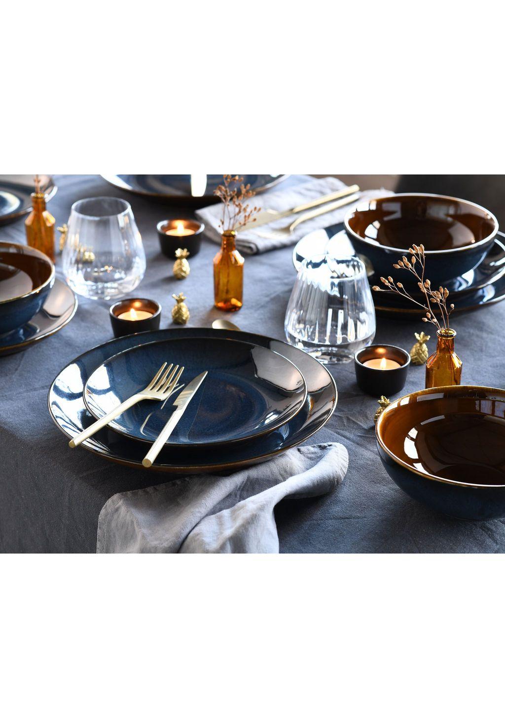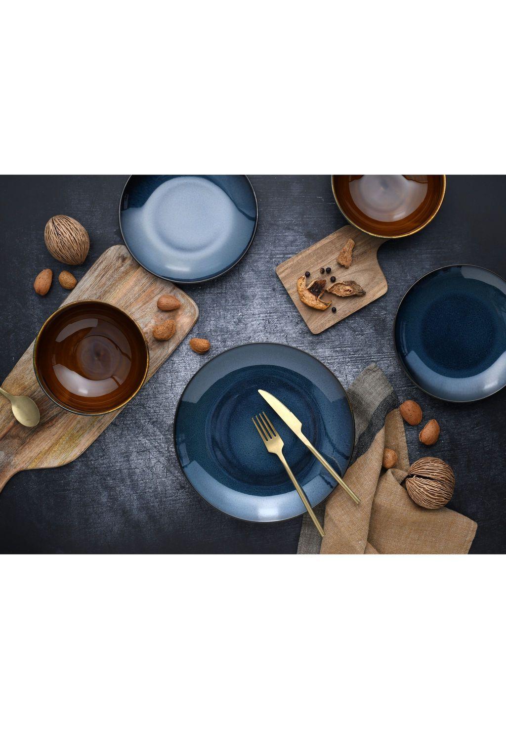 Описание товара: ЭЛЕГАНТНЫЙ НАБОР ТАРЕЛОК: 12 исключительных предметов, готовых украсить ваш стол. В набор входят 4 обеденные тарелки (Ø 27 см), 4 многофункциональные миски (Ø 16 см) и 4 десертные тарелки (Ø 21 см). СРЕДИЗЕМНОМОРСКИЙ КОЛОРИТ: Вы будете очарованы этой посудой, чей насыщенный синий цвет напоминает глубокие воды Средиземного моря. СПЕЦИАЛЬНАЯ ГЛАЗУРЬ: Глянцевая, темно-синяя поверхность придает серии поразительный вид с терракотовым акцентом (задняя часть и внутренняя часть), завершенным винтажной внешней полосой. ДОЛГОВРЕМЕННАЯ РАДОСТЬ: Эта посуда будет сопровождать вас в течение всего дня. Она исключительно прочная и, конечно же, пригодна для мытья в посудомоечной машине и микроволновой печи. КАЧЕСТВО МАРКИ: Наша посуда разработана в Германии и производится на избранных премиальных фабриках, чтобы обеспечить качество, которое вы хотите для своего дома. Кроме того, поломки обычно заменяются быстро и на долгие годы!