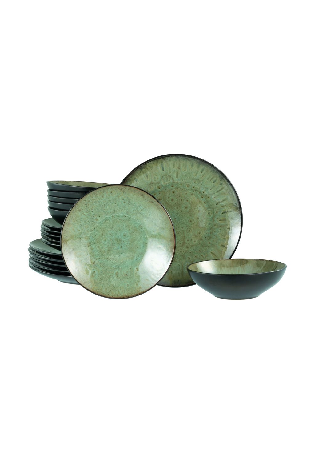 РЕАКТИВНАЯ ГЛАЗУРЬ: Серия Jawa впечатляет своей насыщенной зеленой реактивной глазурью, которая придает каждому предмету уникальное обаяние и делает ваш обеденный стол притягивающим взгляд.
